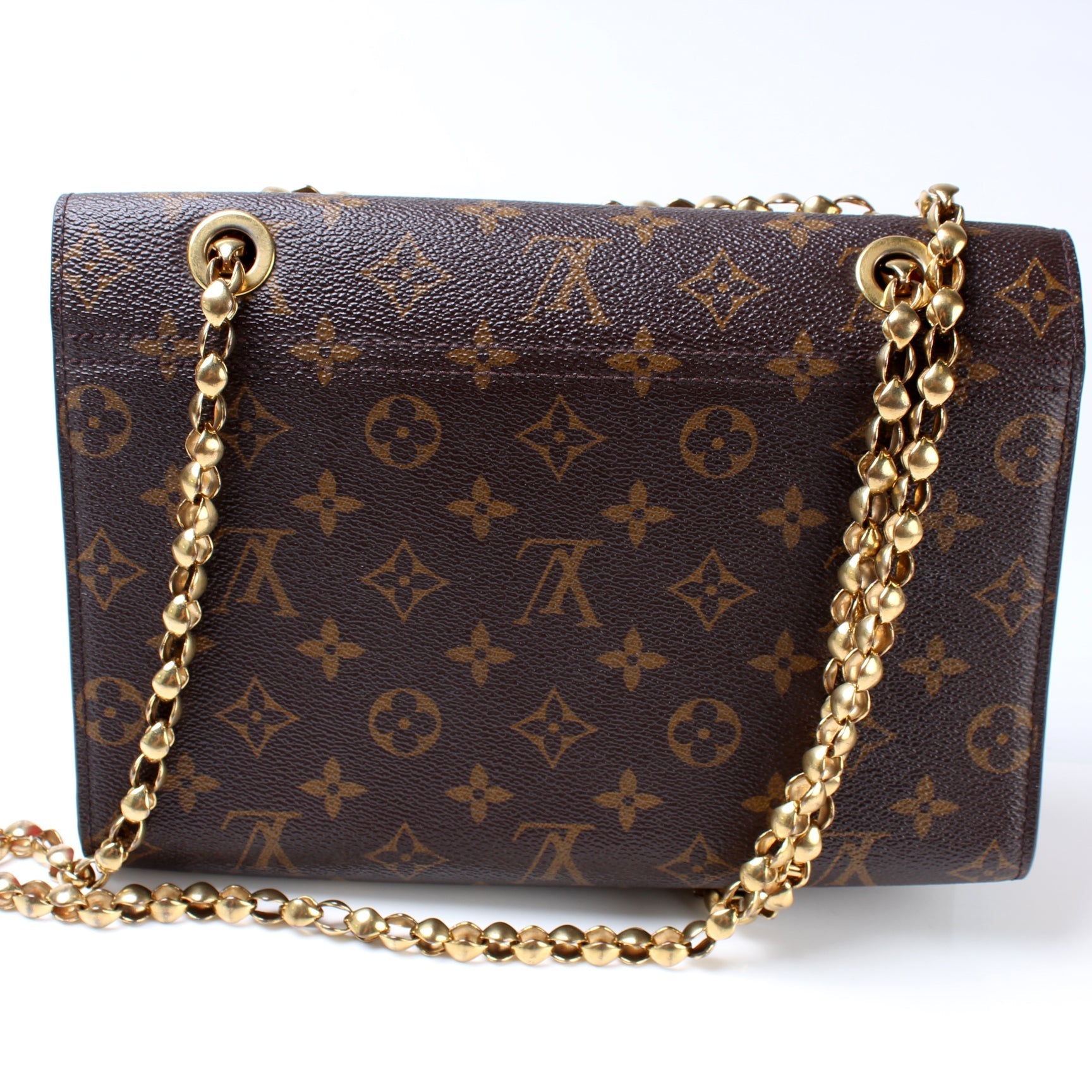 This Louis Vuitton Victorieis eye catching bag. The exterior is in the classic Monogram coated canvas.