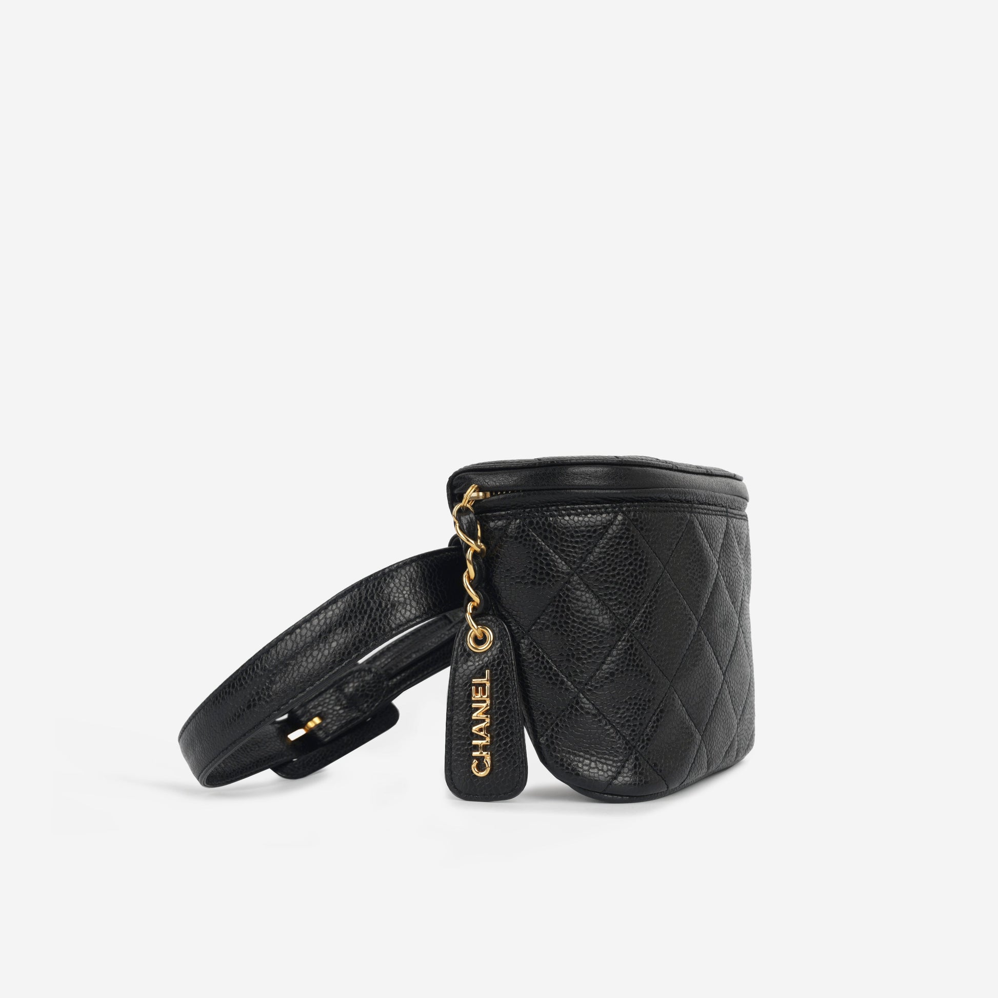 This Chanel vintage belt quilted bag is the most practical piece keeping you hands free and your items secure. Remaining iconic to the brand, the bag features quilted leather and a bold Chanel engraved logo charm in gold hardware