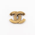 This is the always popular Chanel CC brooch. This vintage item is made in aged gold tone metal decorated with embedded beads. Stylish addition to any outfit.