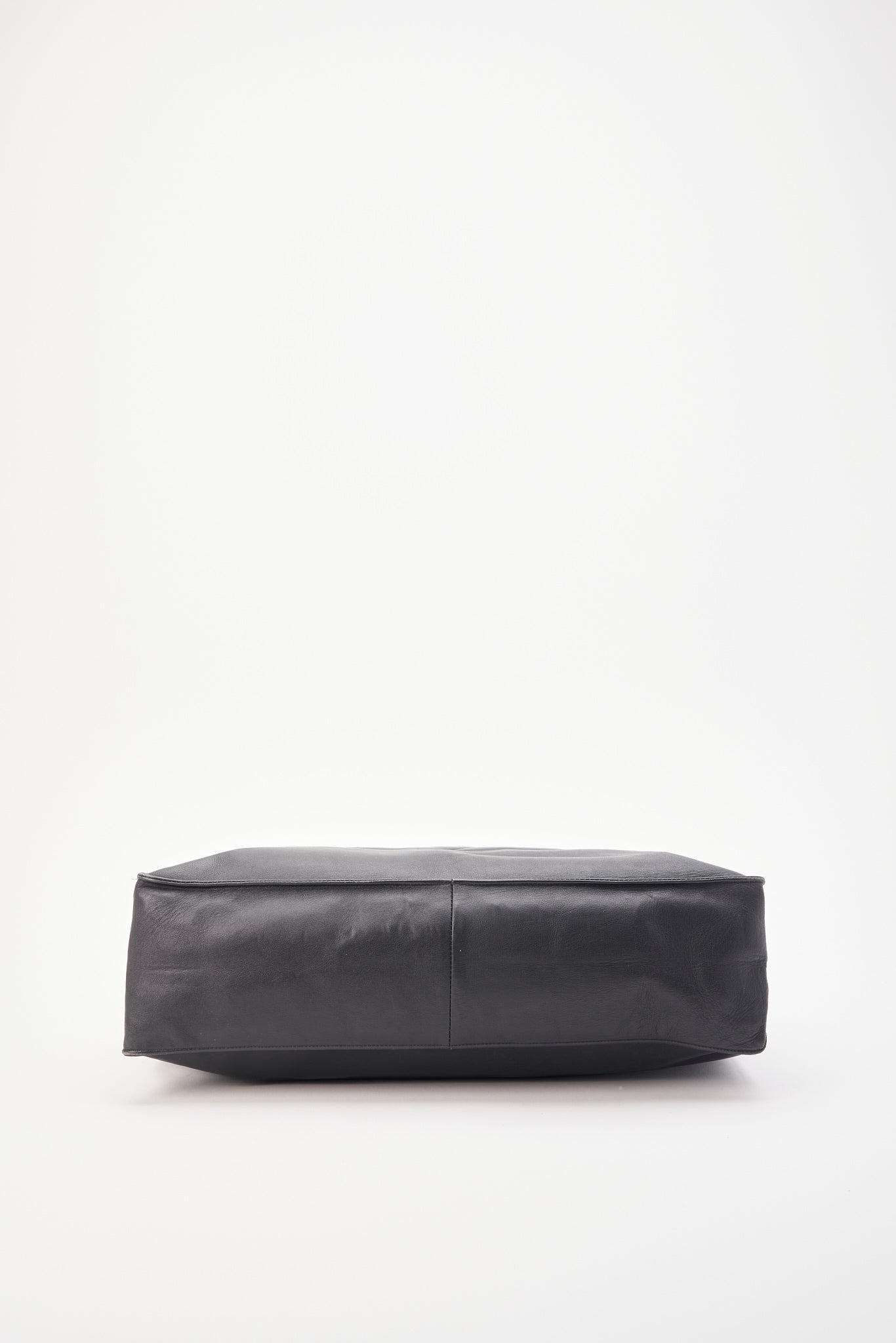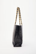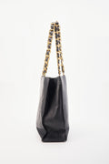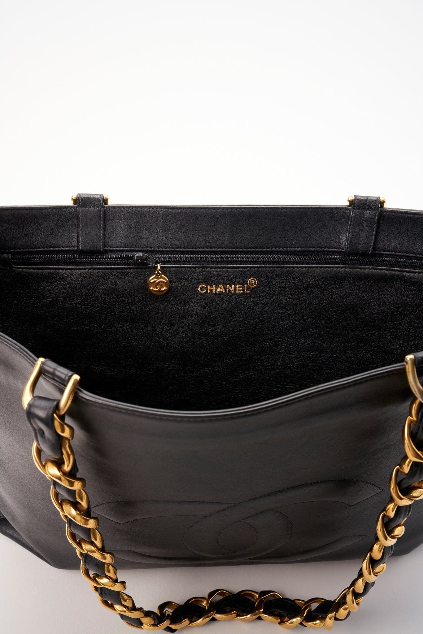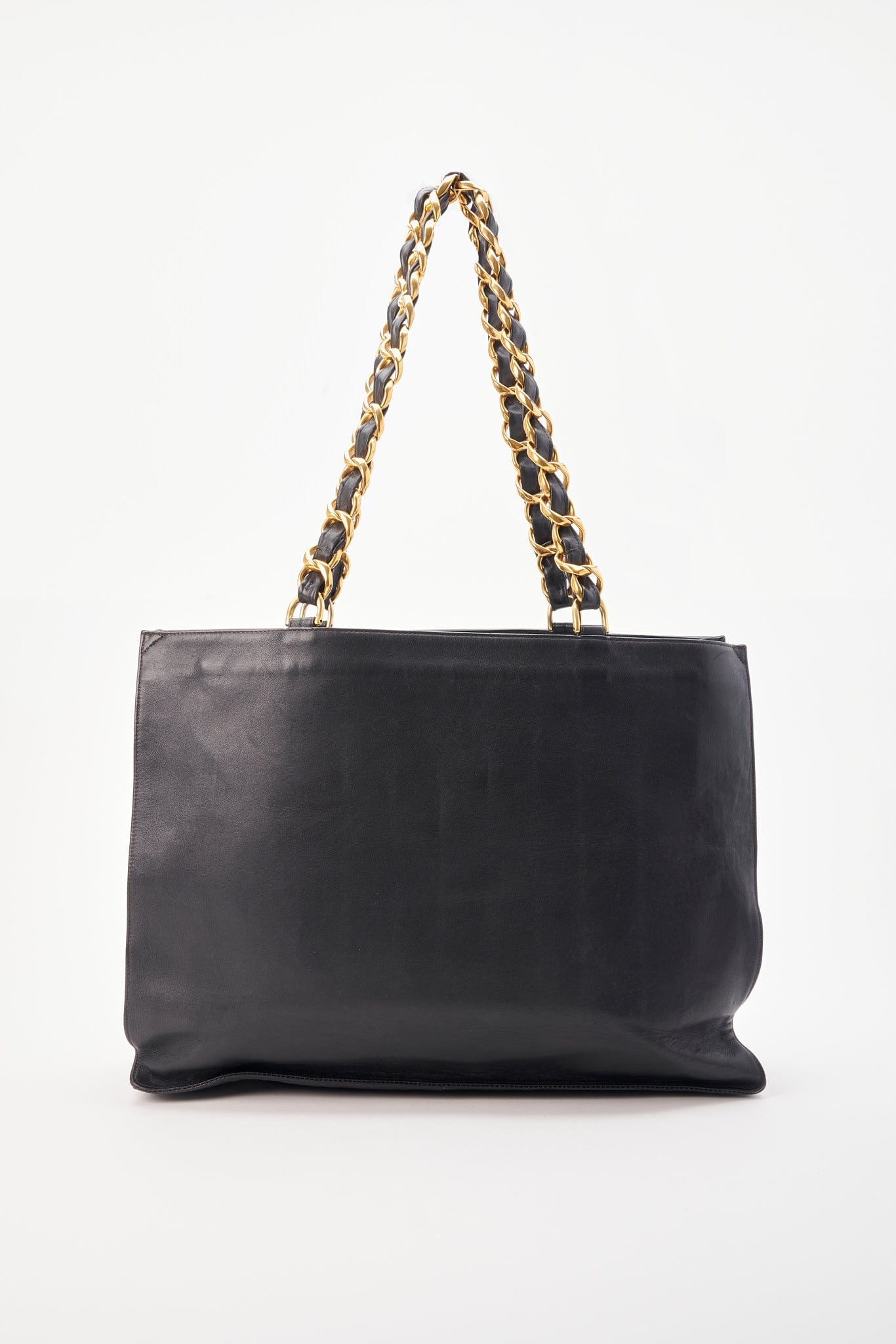 Vintage Chanel Black Leather Tote Bag with Chunky Gold Hardware