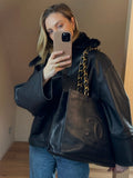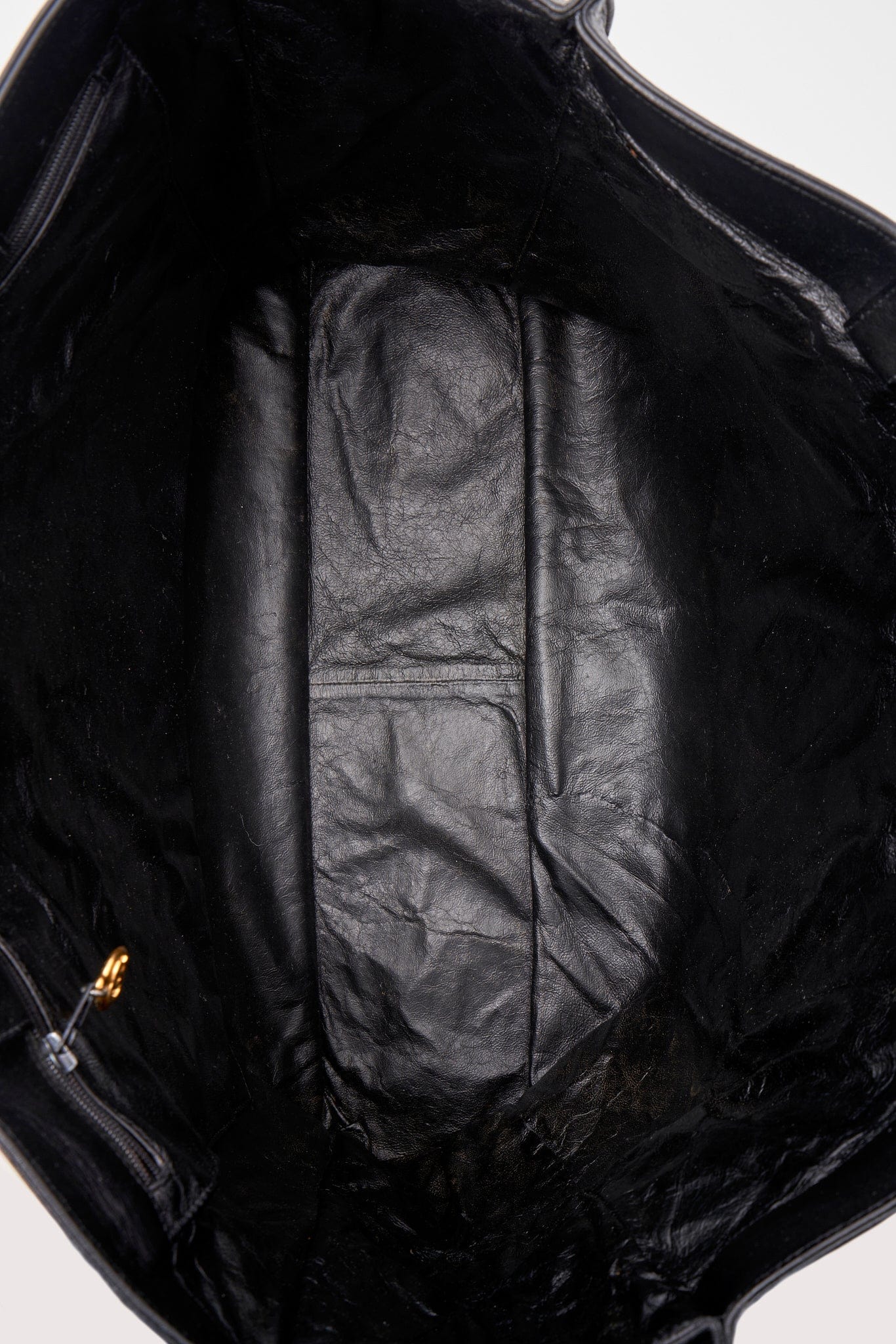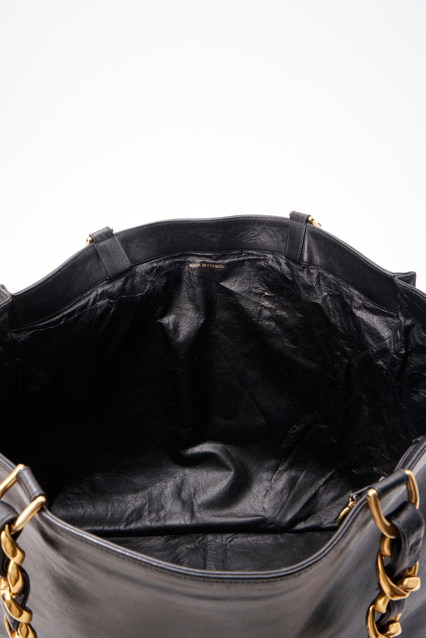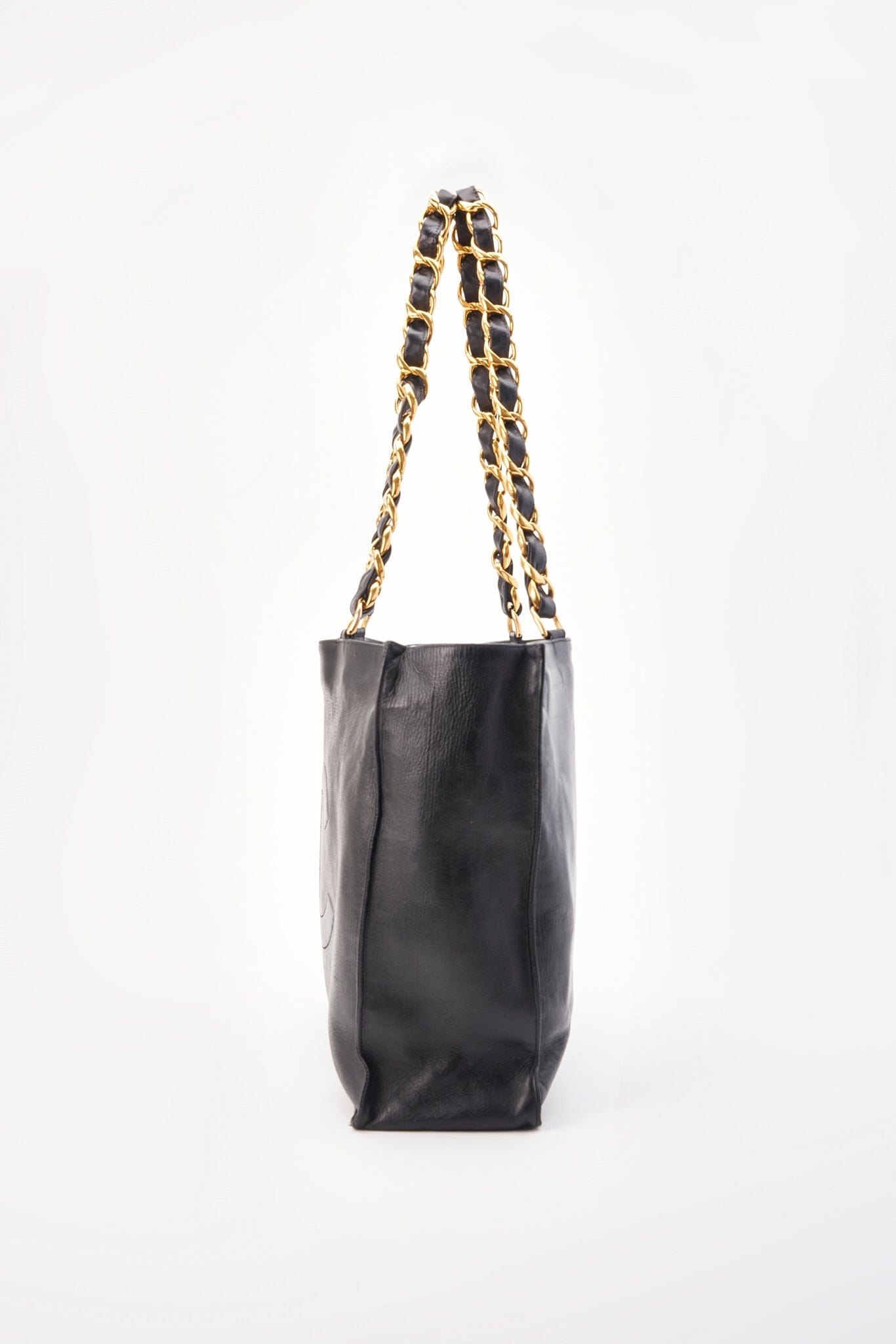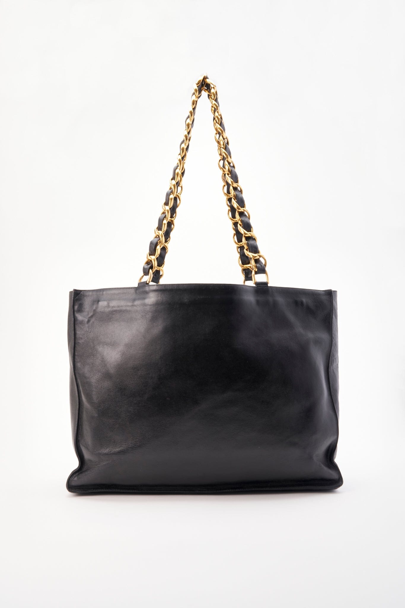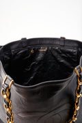 Vintage Chanel Black Leather Tote Bag with Chunky Gold Hardware