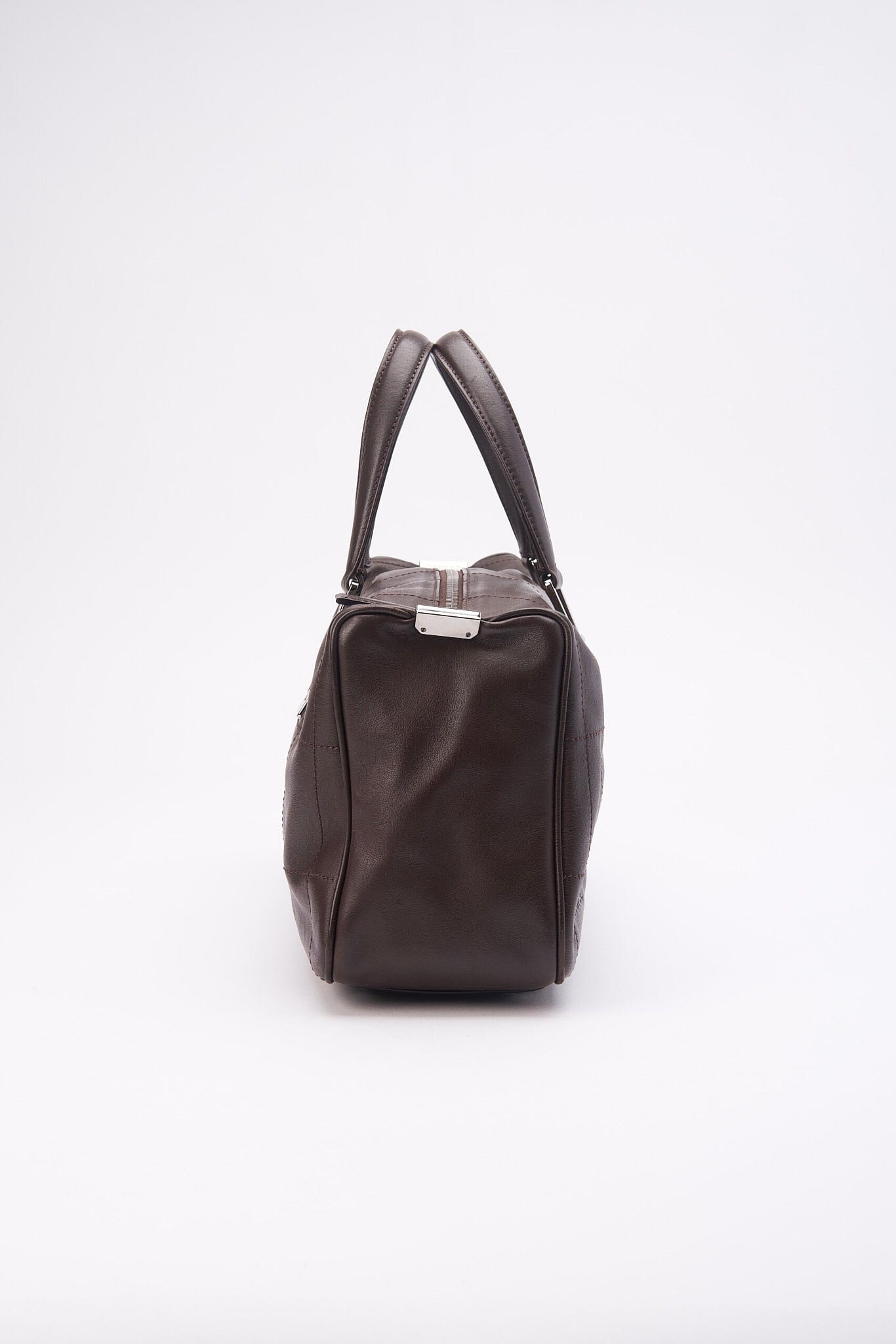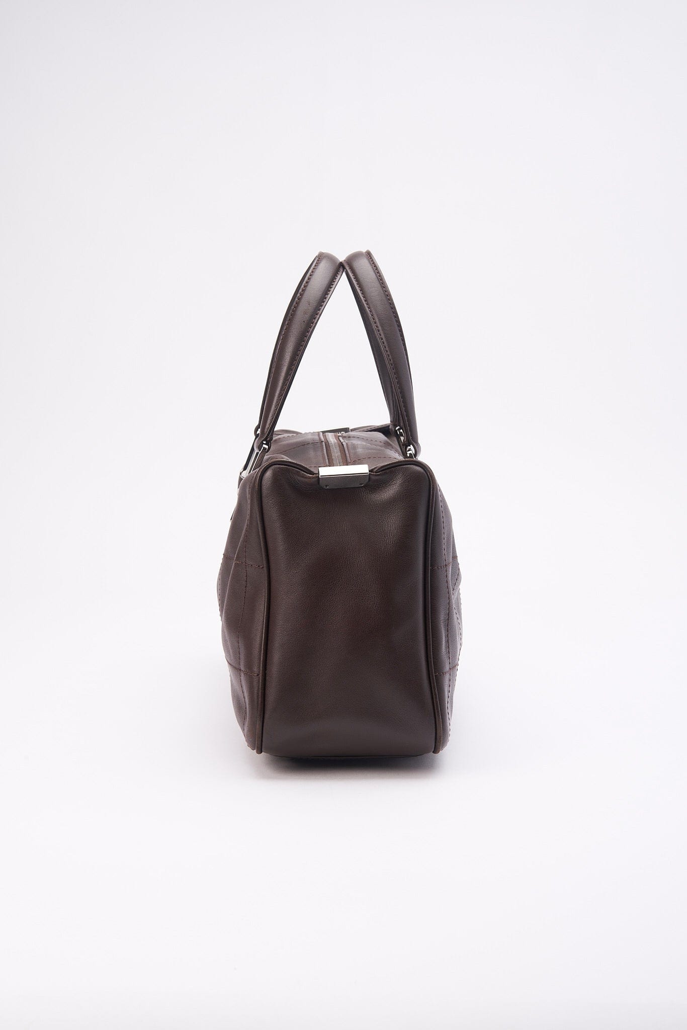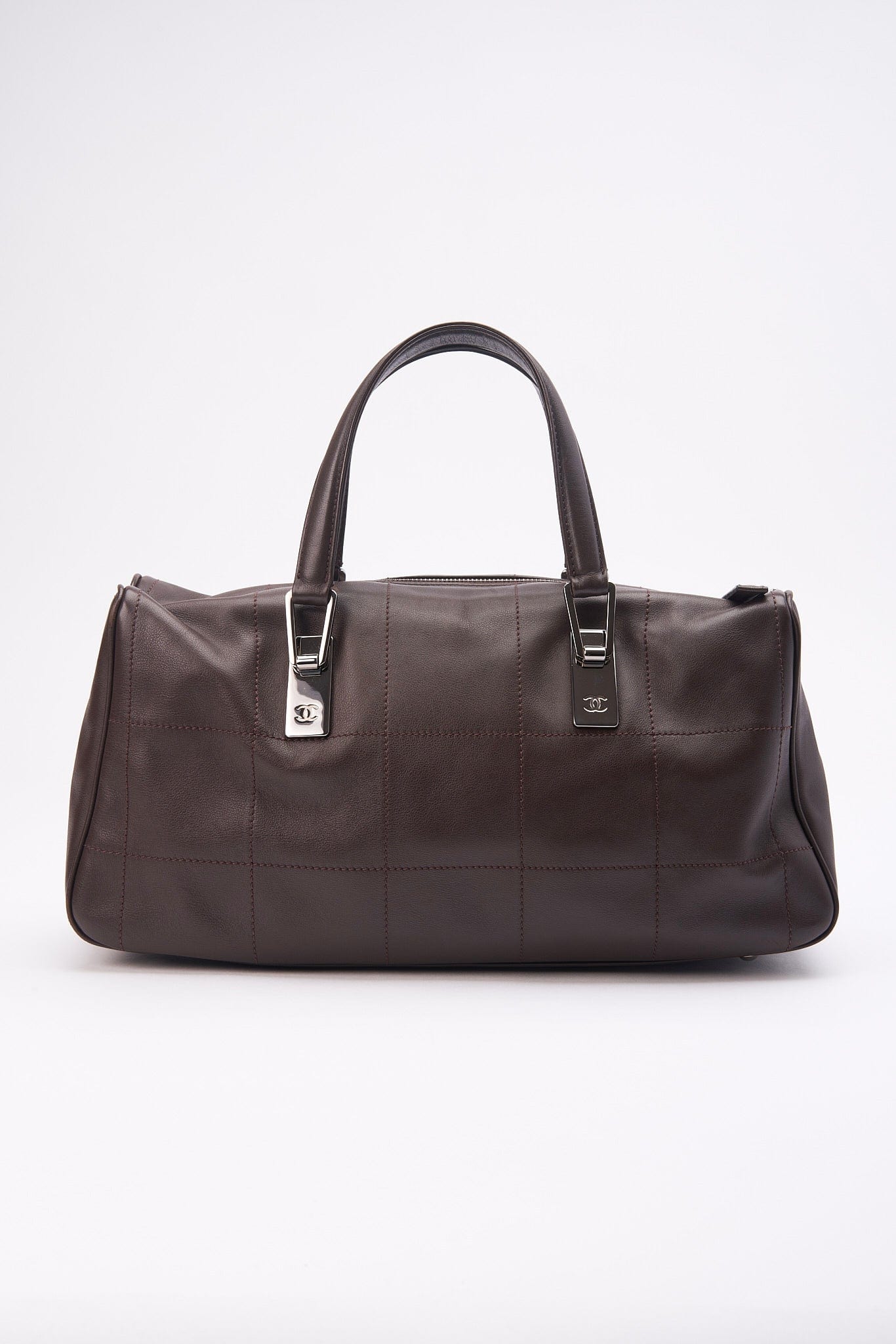 A super cool Chanel brown leather Chocolate Bar stitch Boston bag with Chanel branded silver hardware.