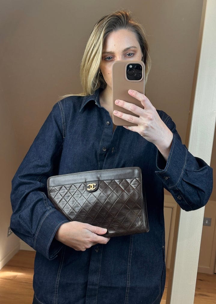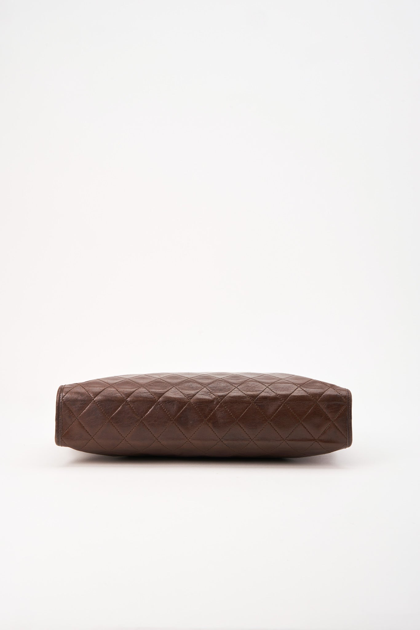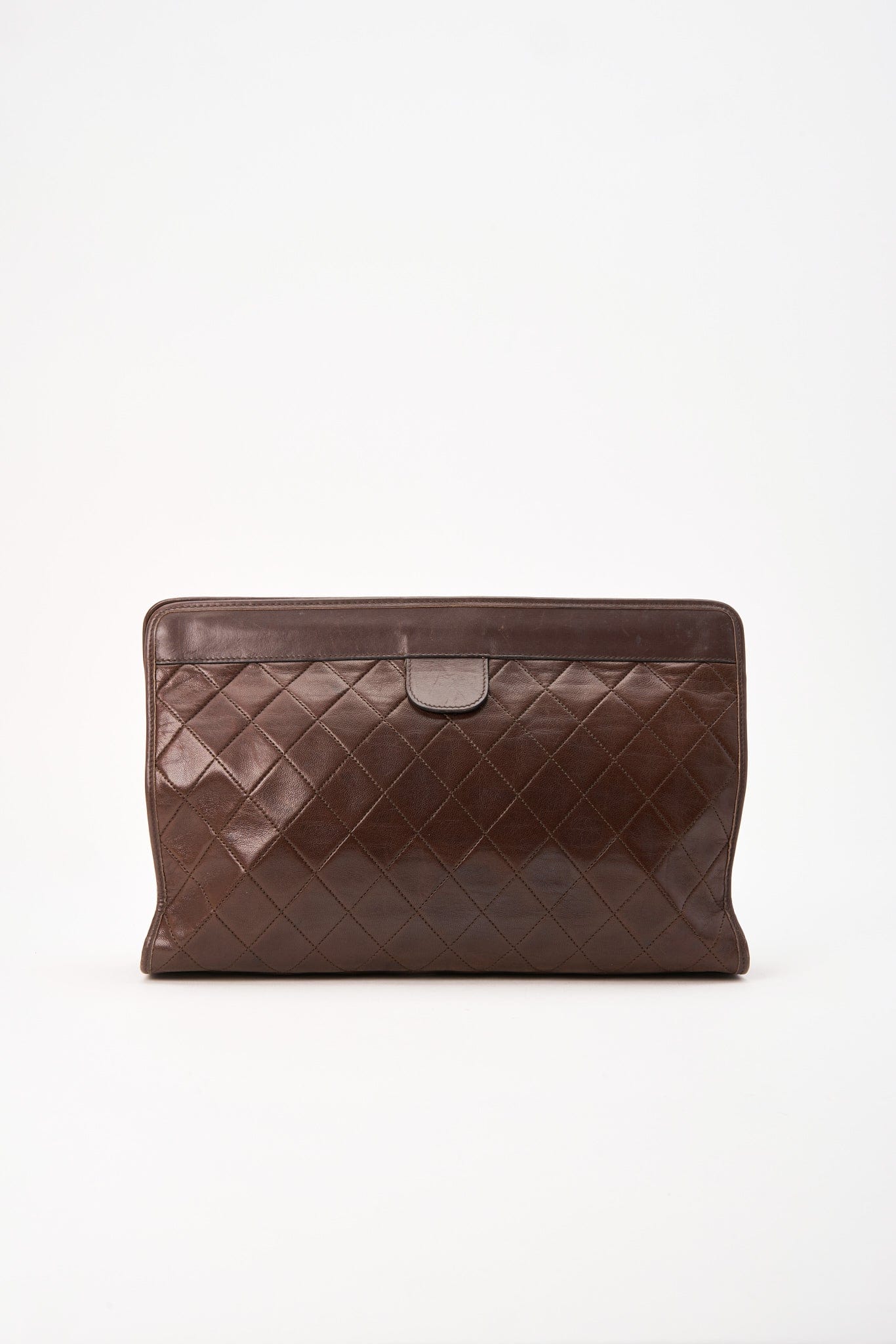 Vintage Chanel Brown Leather Clutch Bag With 24K Gold Plated Hardware