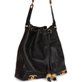 Vintage Chanel CC Bucket Bag Black Caviar Gold Hardware