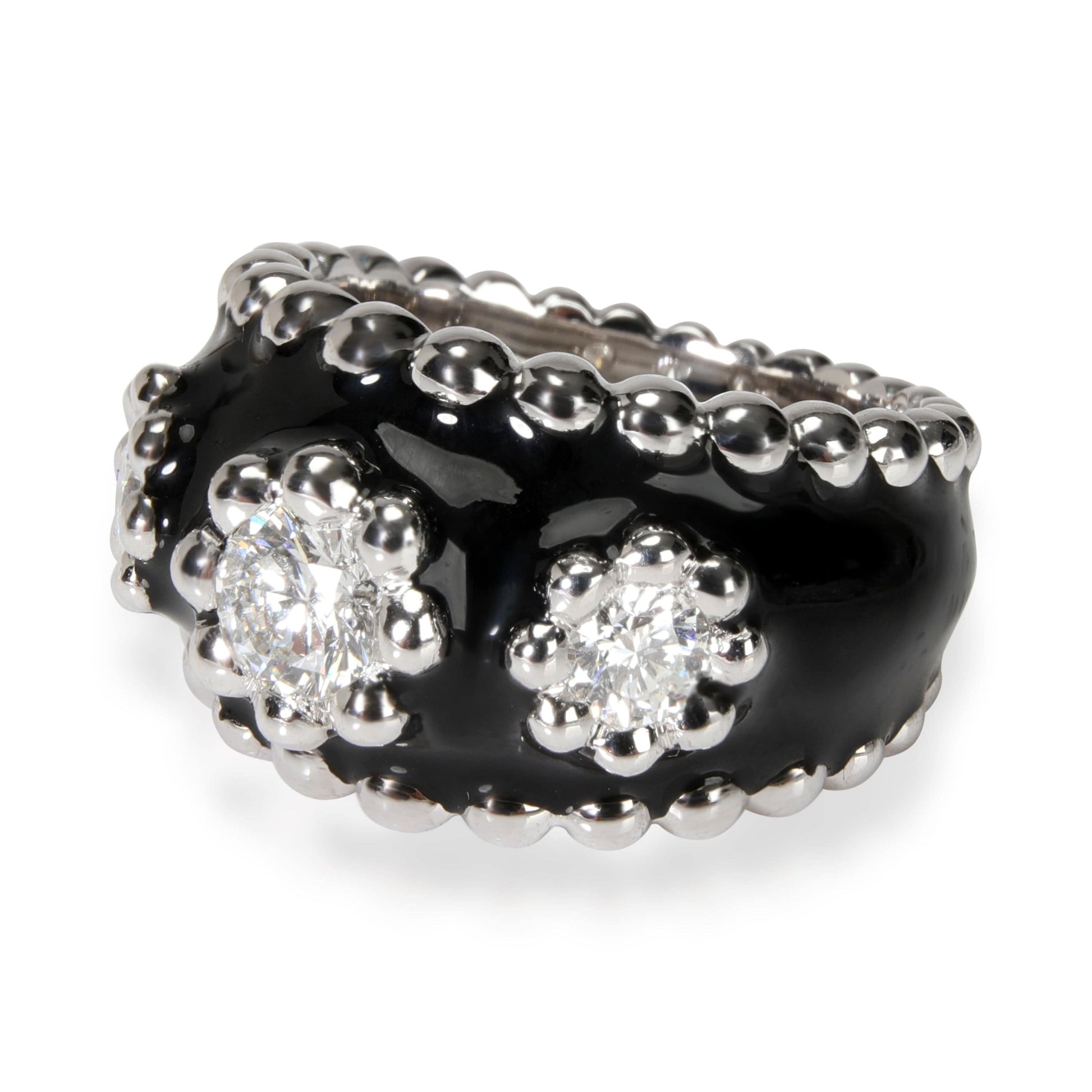 Vintage Chanel Diamond & Enamel Cocktail Ring in 18kt White Gold 0.9 CTW