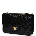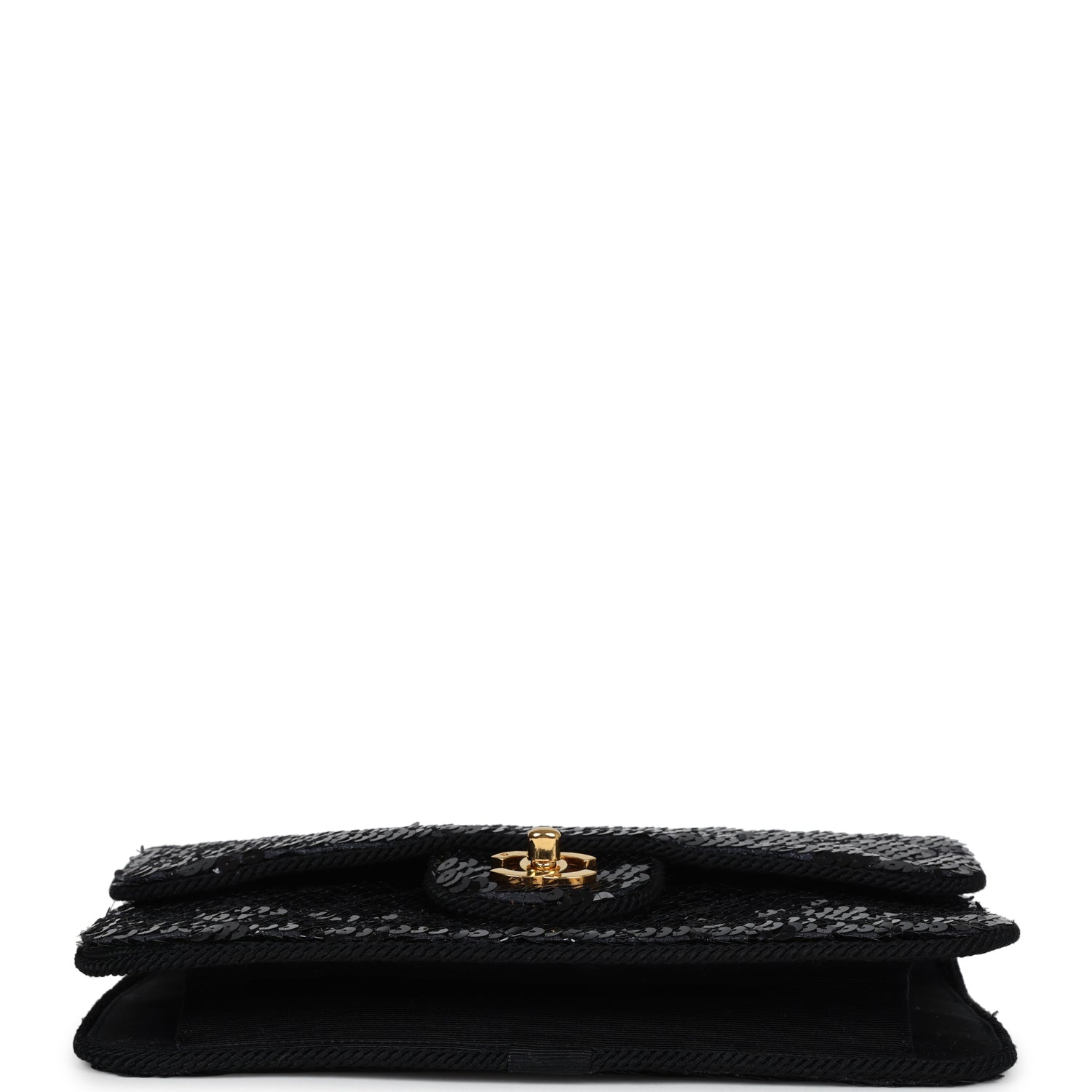 Vintage Chanel Small Flap Bag Black Sequin Gold Hardware