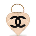 Vintage Chanel Heart Vanity Bag Beige and Black Patent Antique Gold Hardware