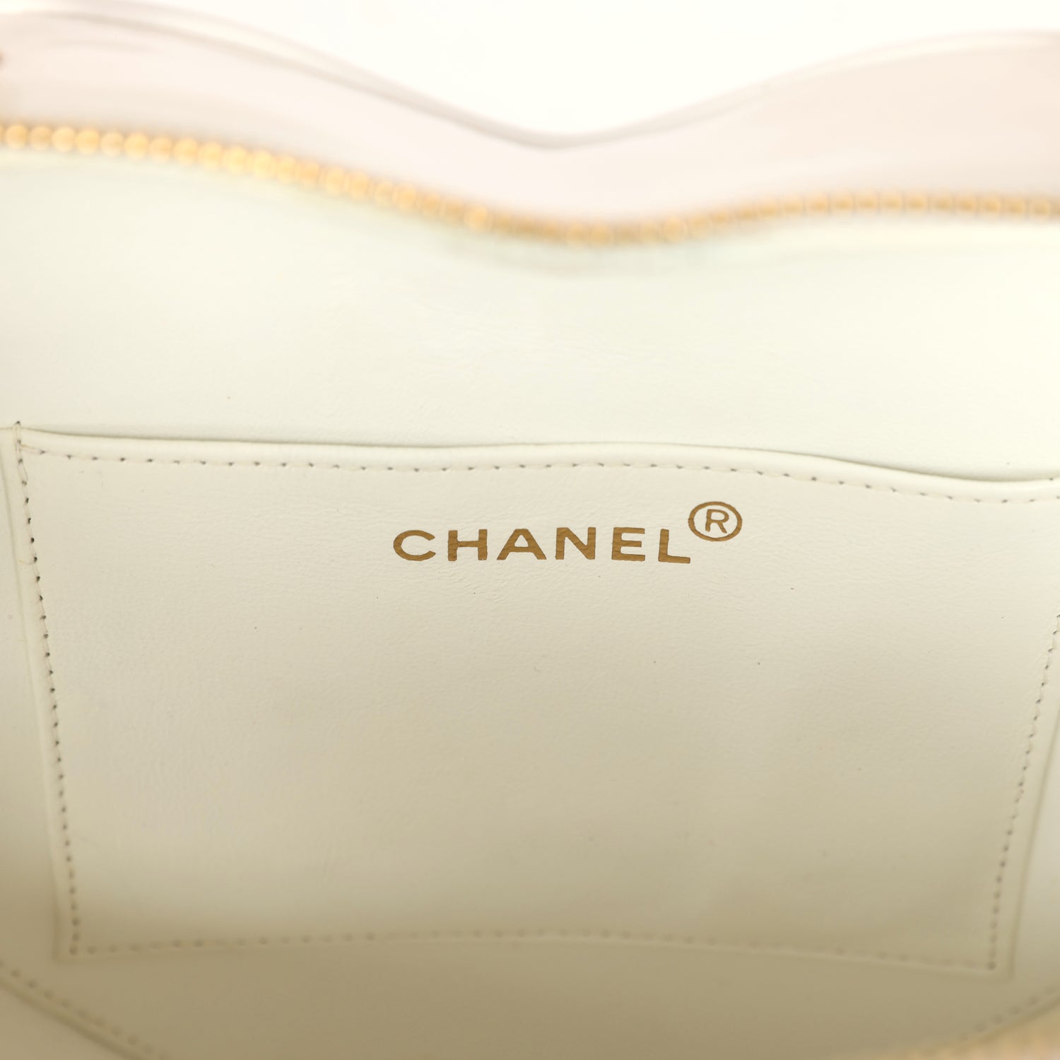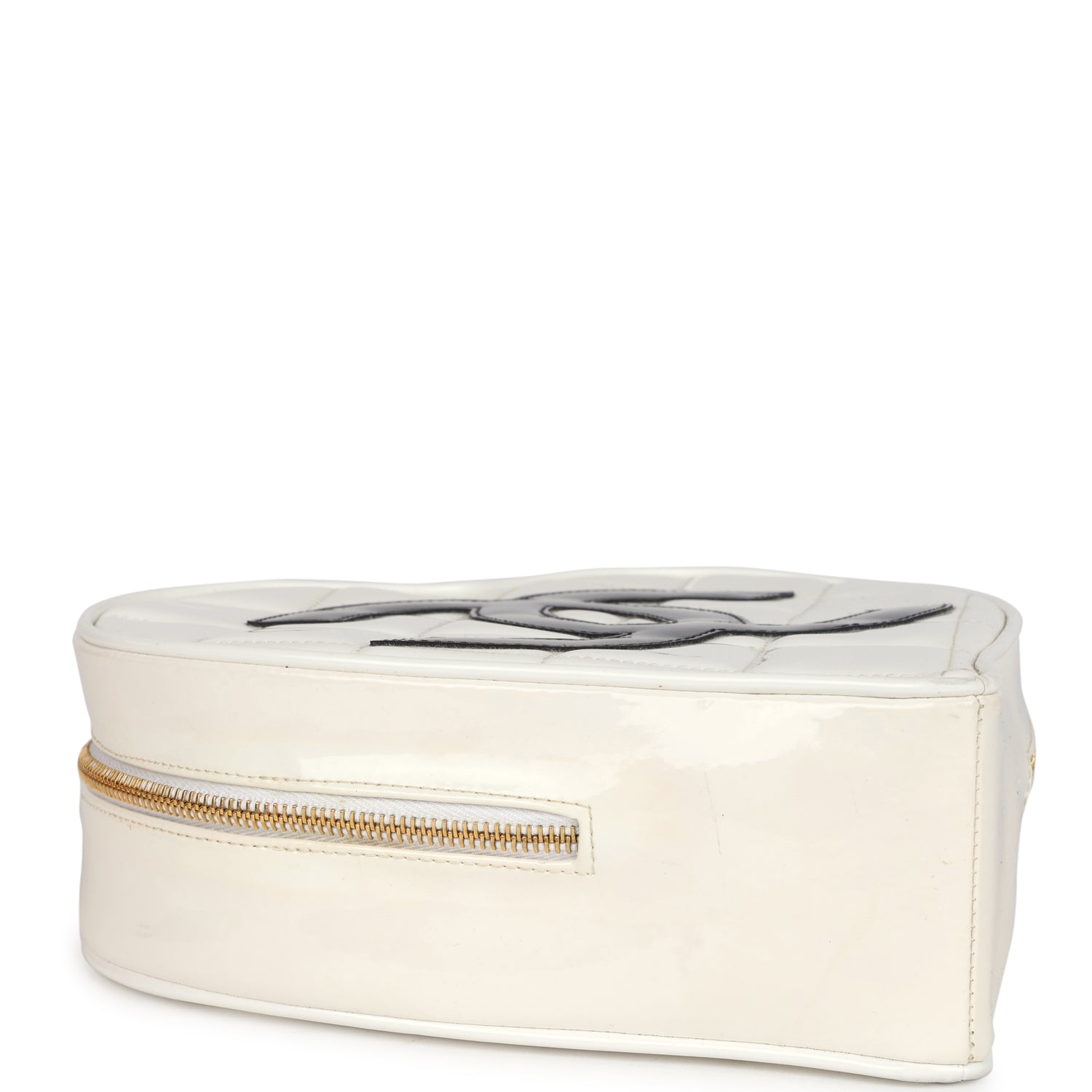 Vintage Chanel Heart Vanity Bag White and Black Patent Antique Gold Hardware