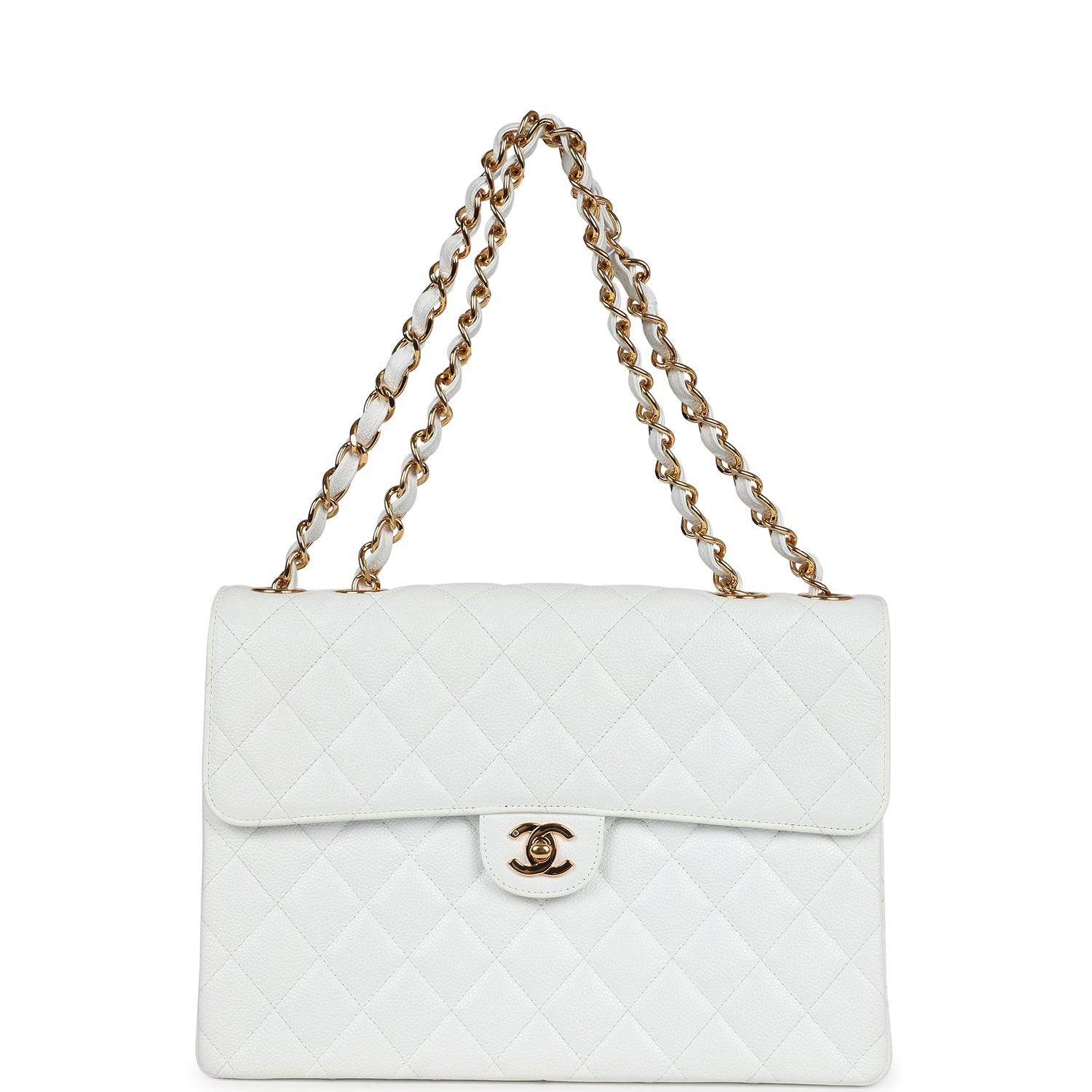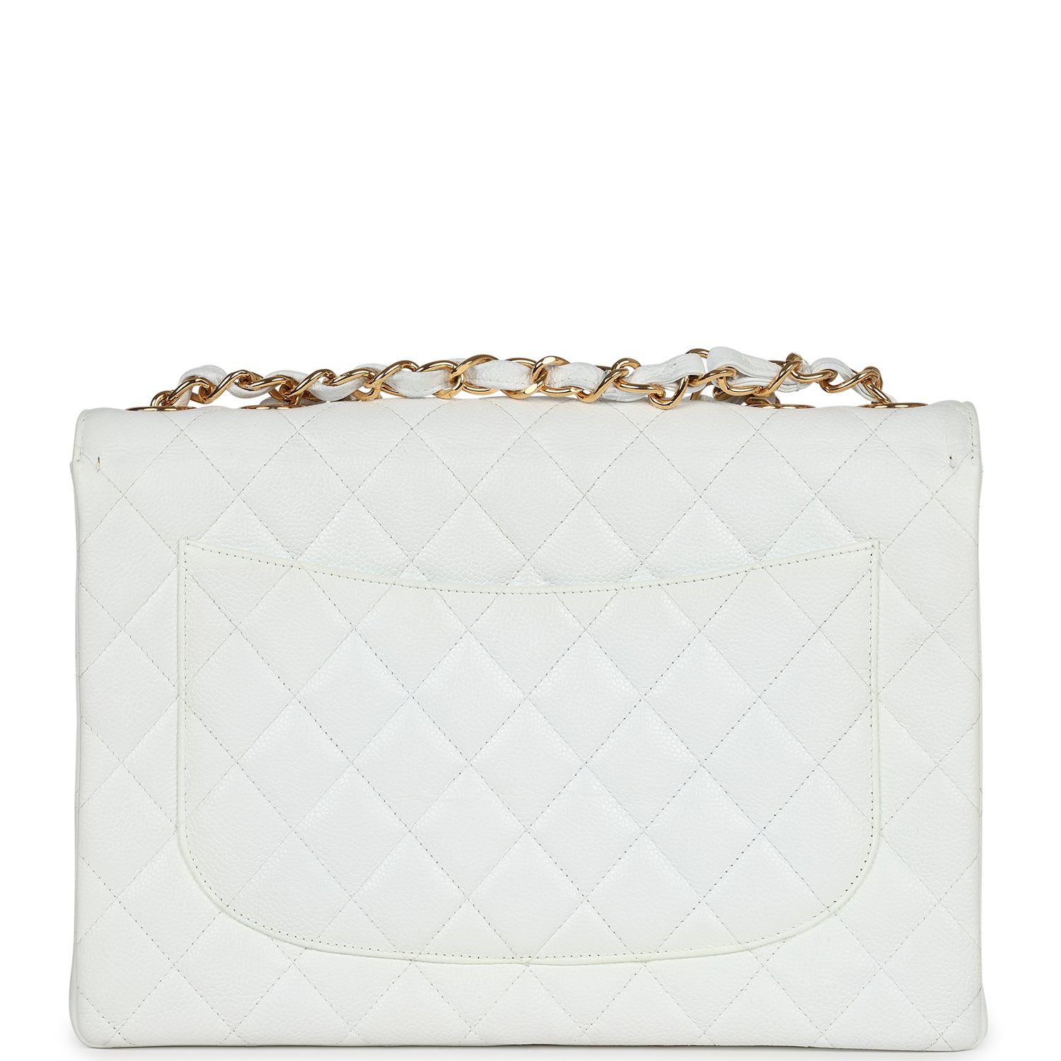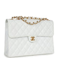 Vintage Chanel Jumbo Single Flap Bag White Caviar Gold Hardware