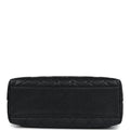 The interior is lined in black leather and includes one zip pocket with logo pull and a slip pocket underneath on the rear wall.