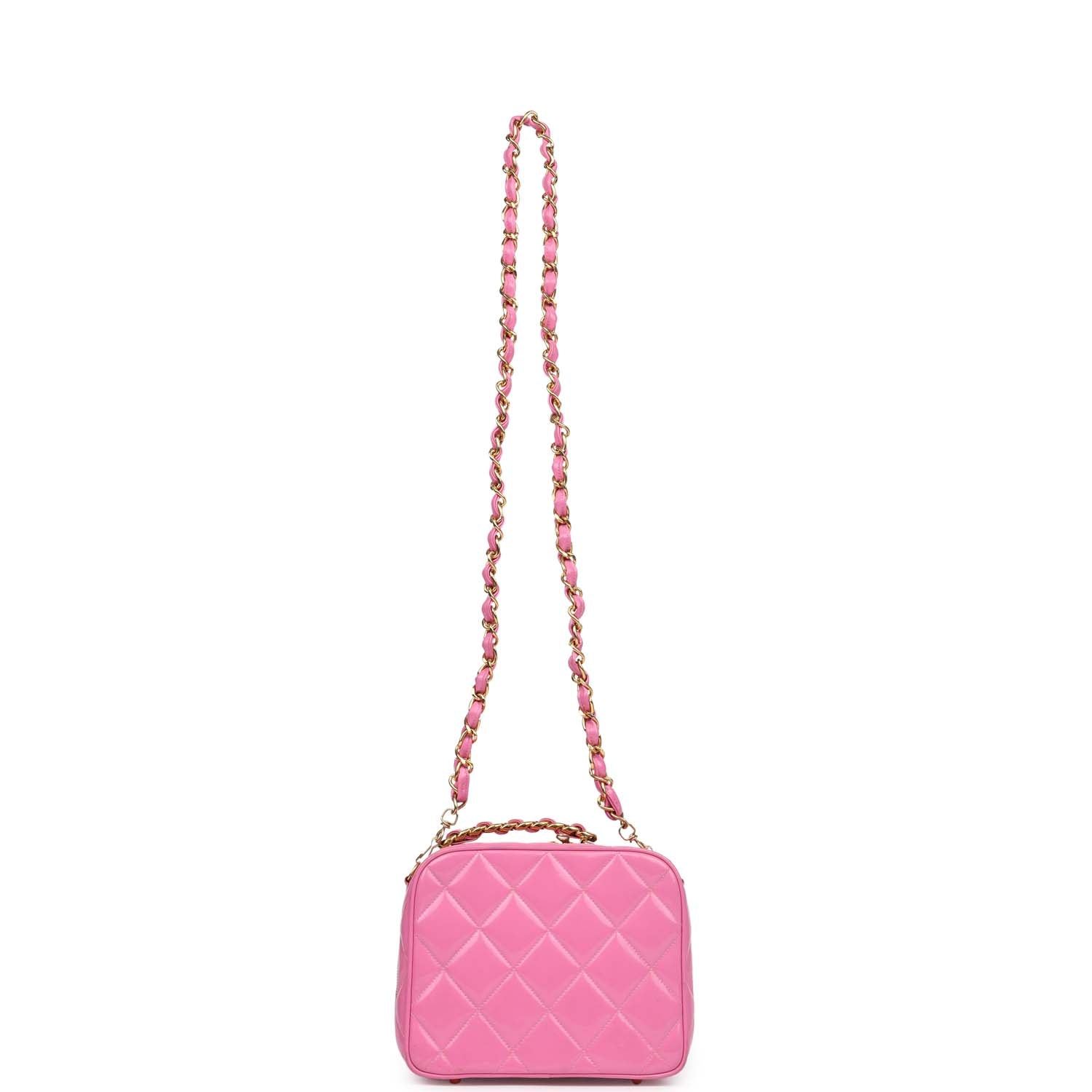 Vintage Chanel Lunchbox Vanity Bag Pink Patent Gold Hardware
