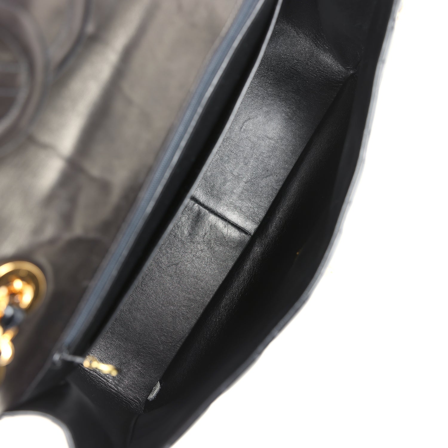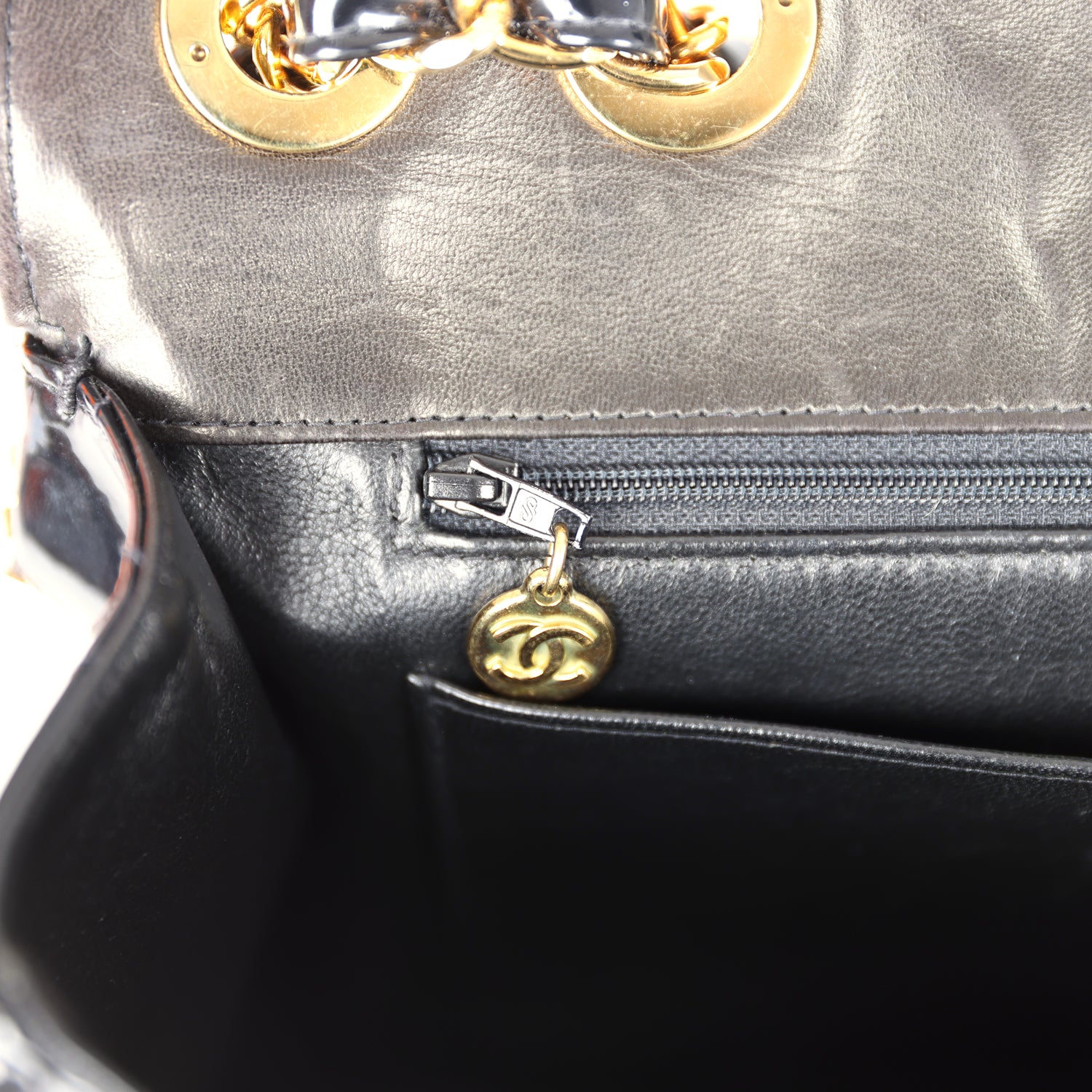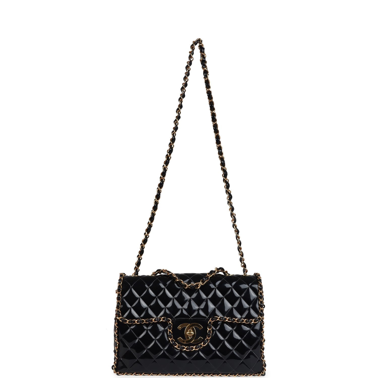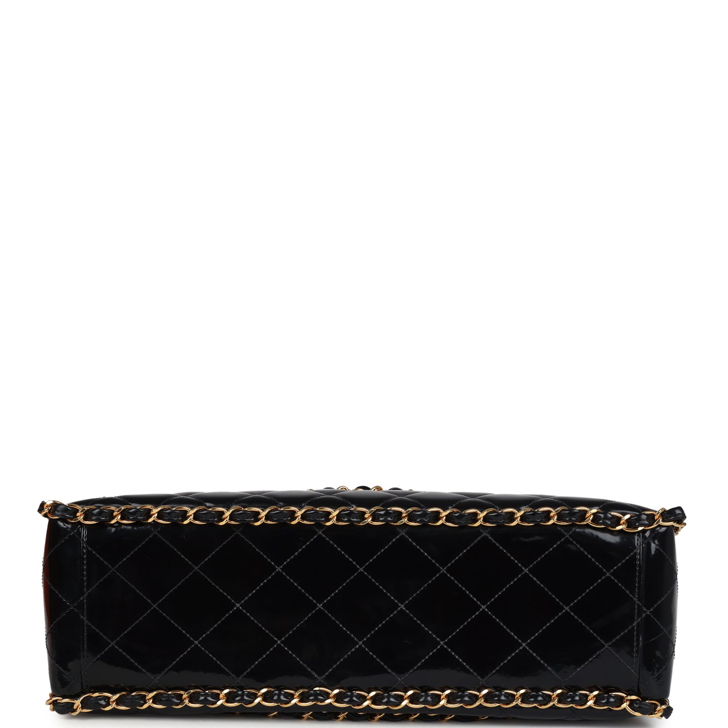 Vintage Chanel Maxi Chain Around Single Flap Bag Black Patent Gold Hardware