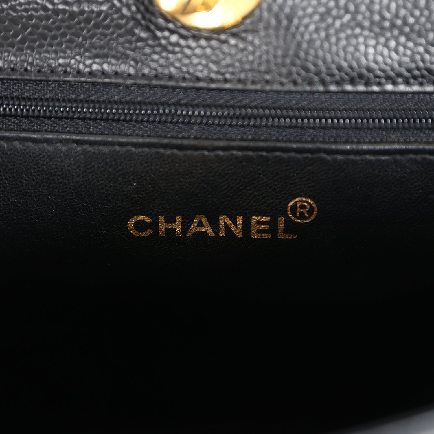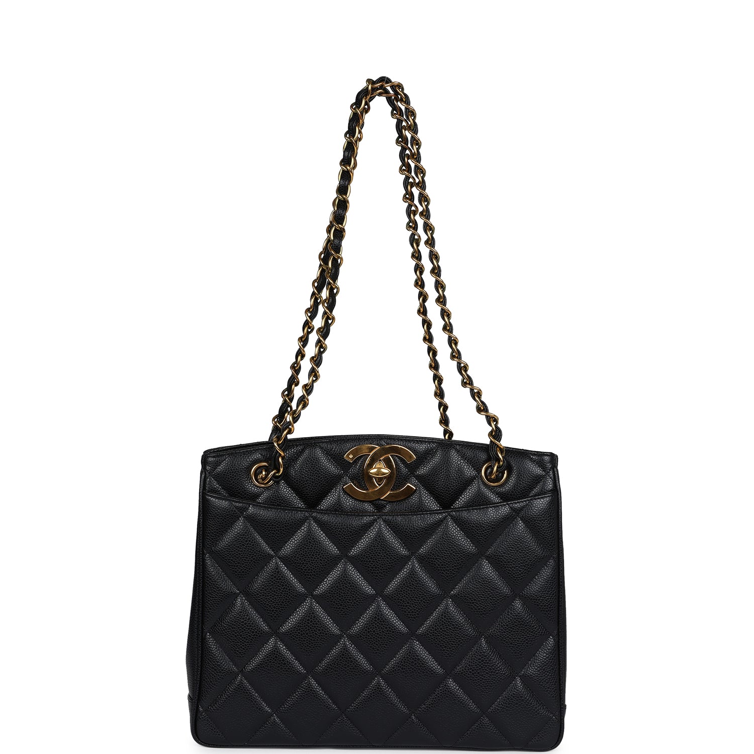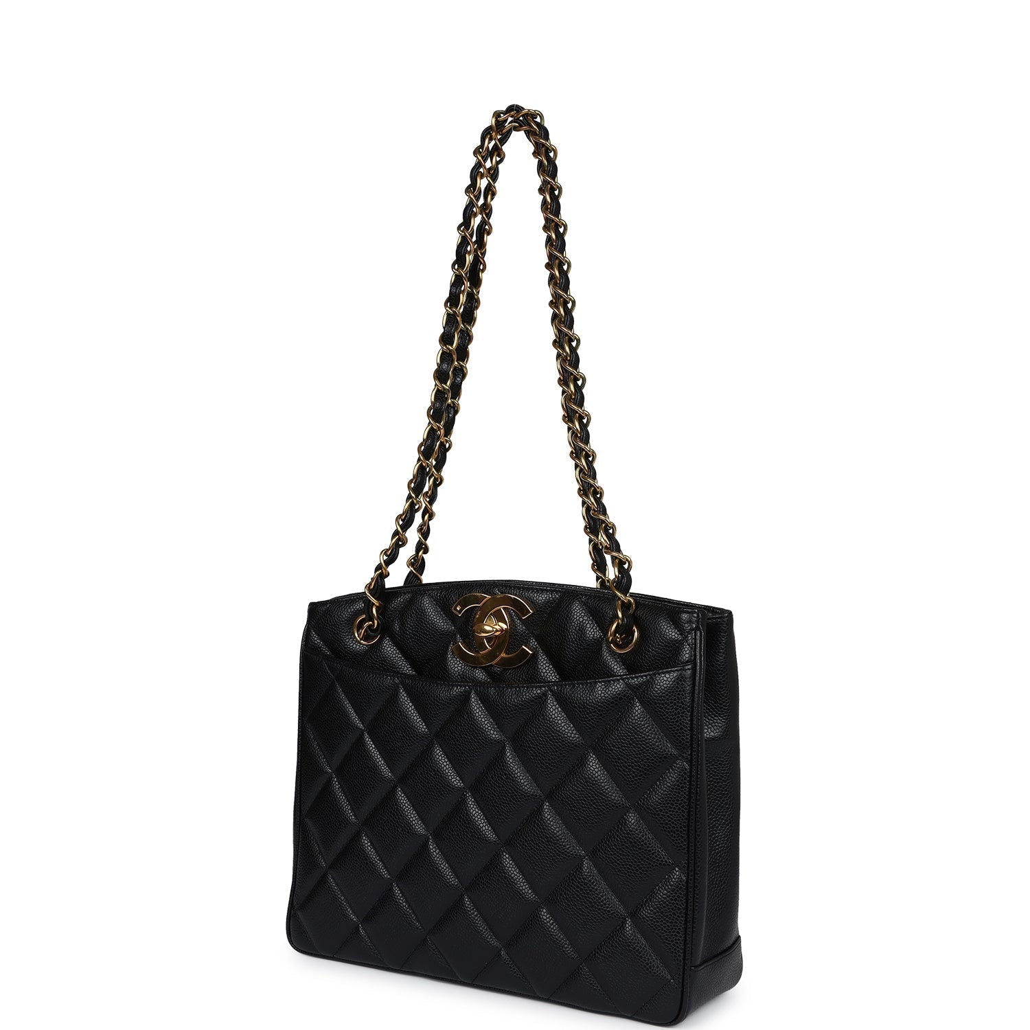 Vintage Chanel Medium CC Turnlock Tote Black Caviar Gold Hardware