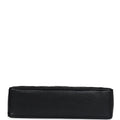 The interior is lined in black leather and has two interior zip pockets with Chanel gold zipper pull on front and rear wall.