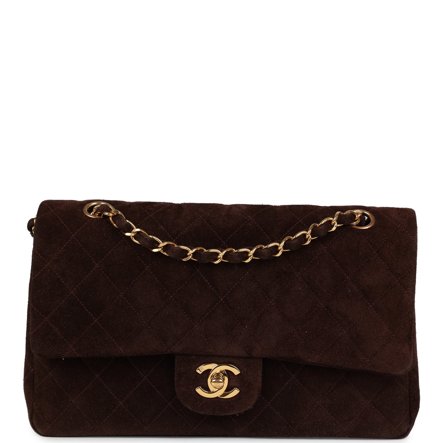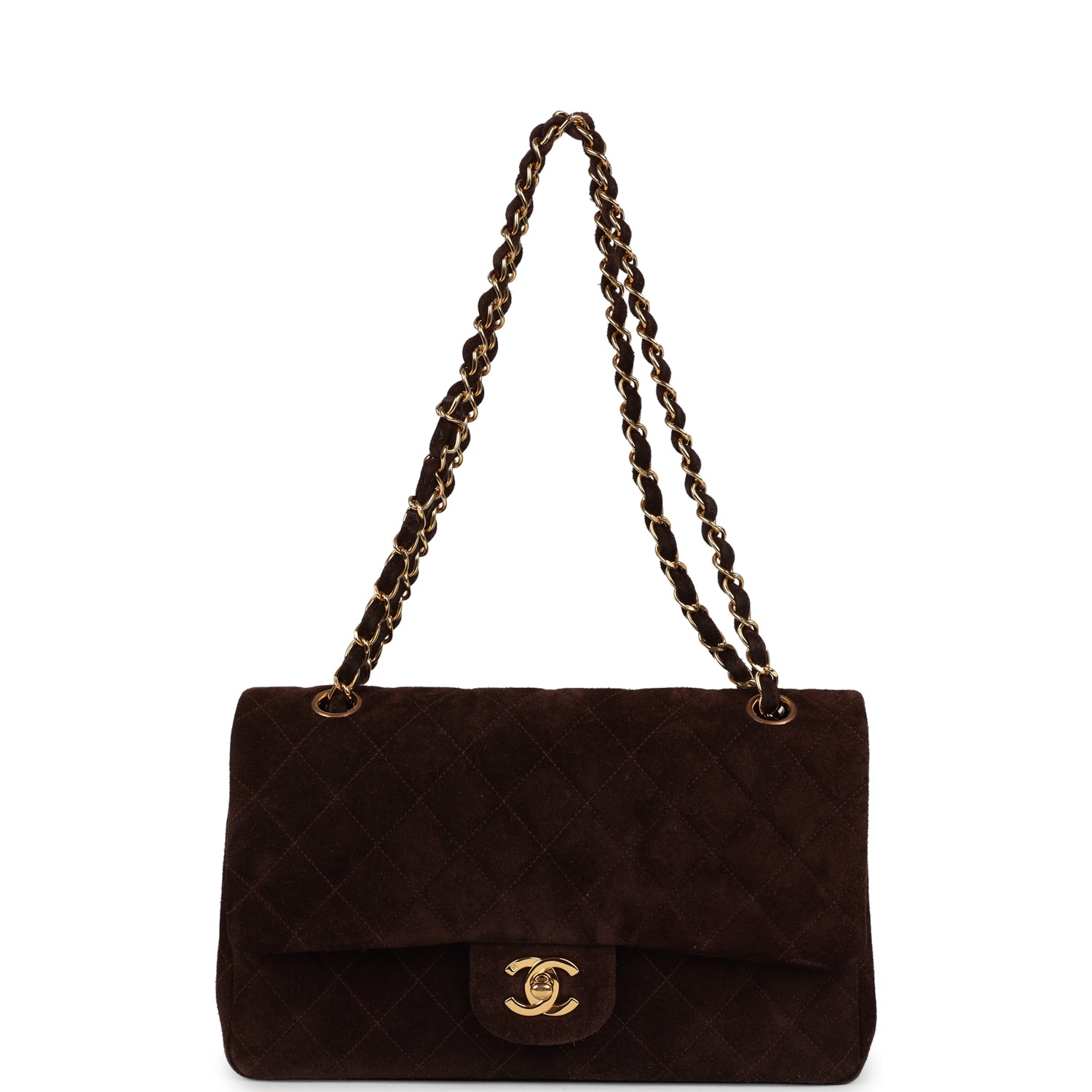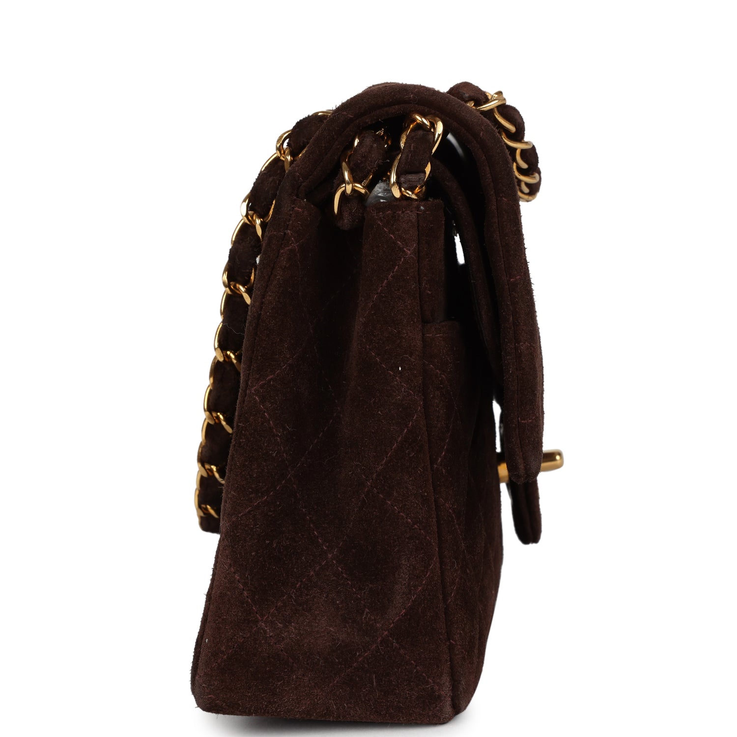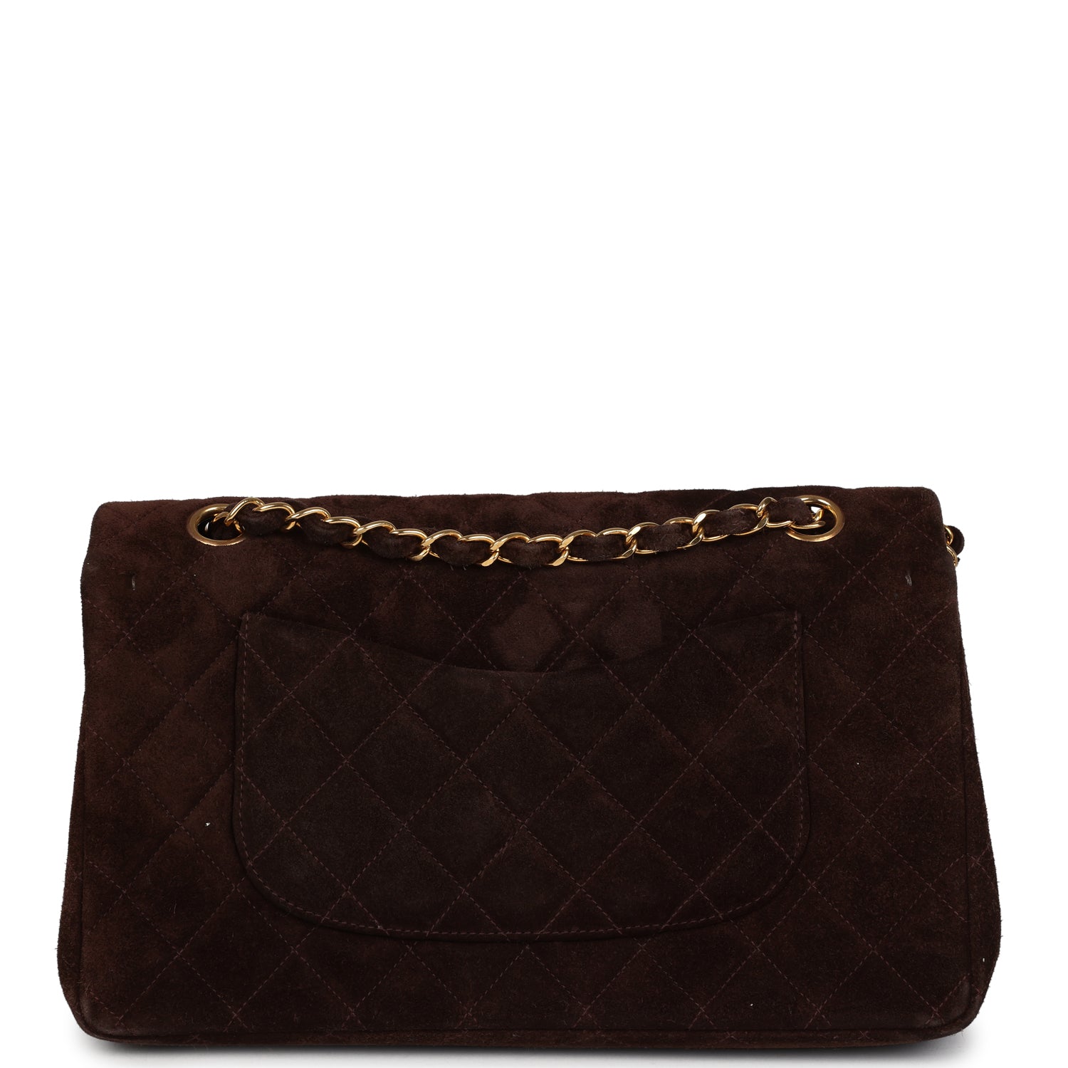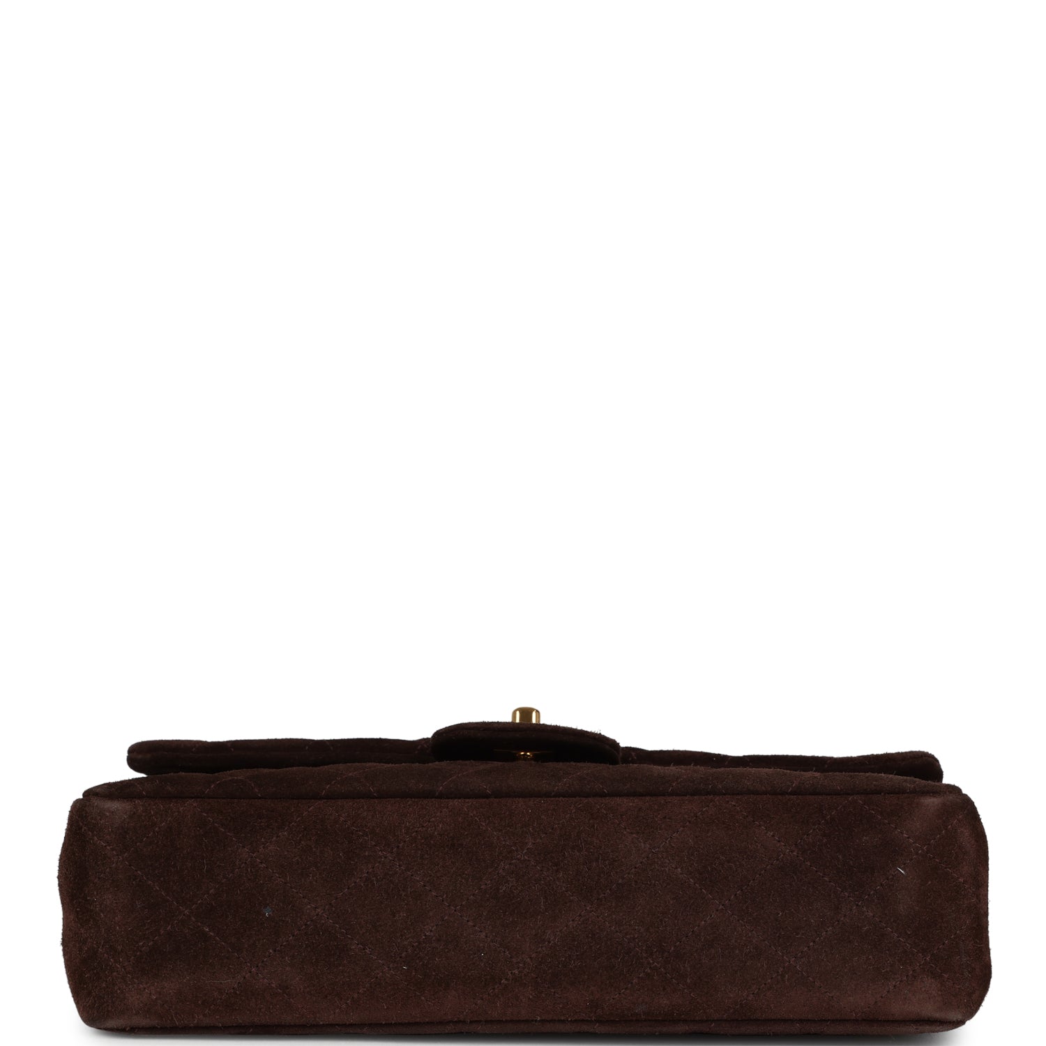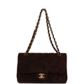 Vintage Chanel Medium Classic Double Flap Bag Brown Suede Gold Hardware