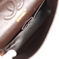 The interior is lined in brown leather with the "love letter" zipper compartment underneath the first flap, an "outer" slit pocket under the second flap, and an interior compartment with two open pockets separated by a "lipstick" compartment.