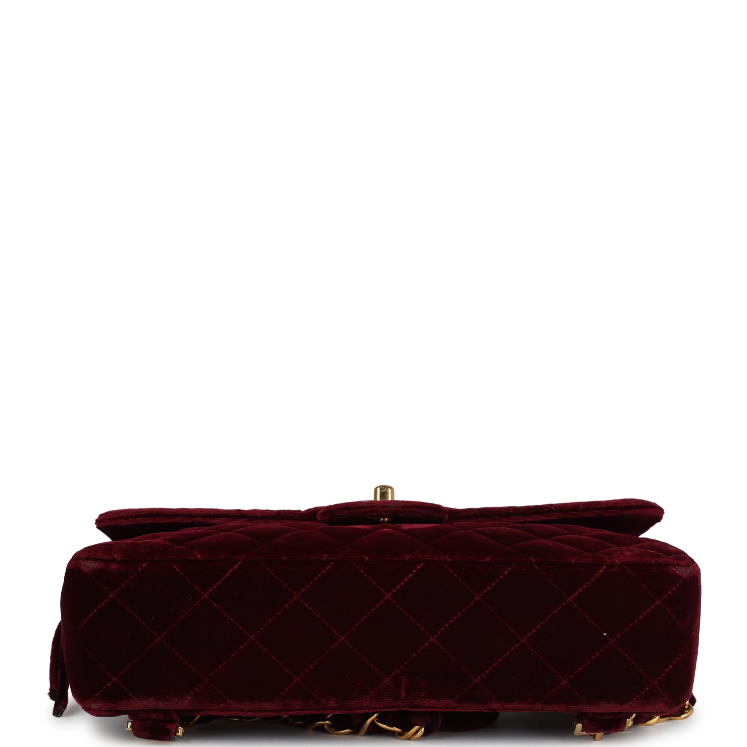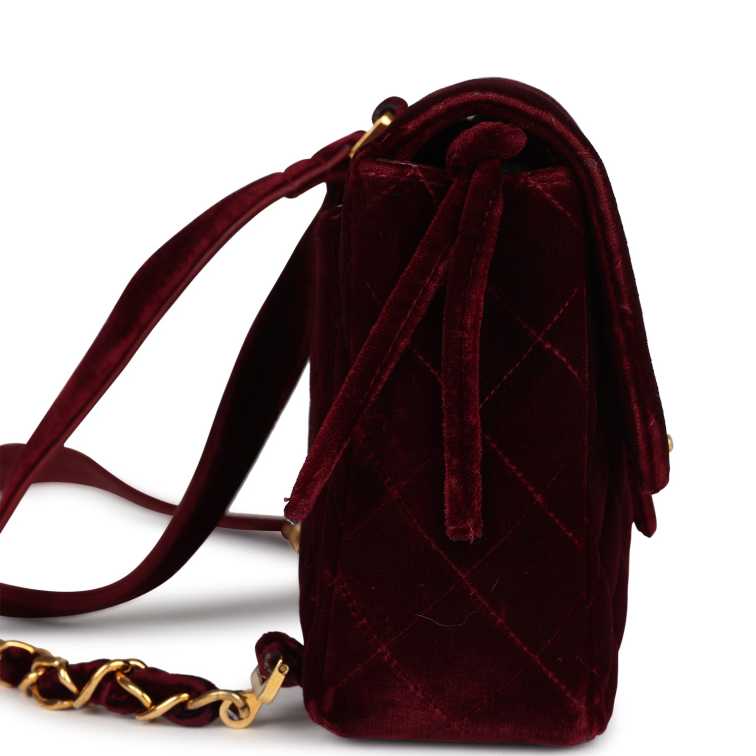 Vintage Chanel Medium Classic Flap Backpack Burgundy Velvet Gold Hardware