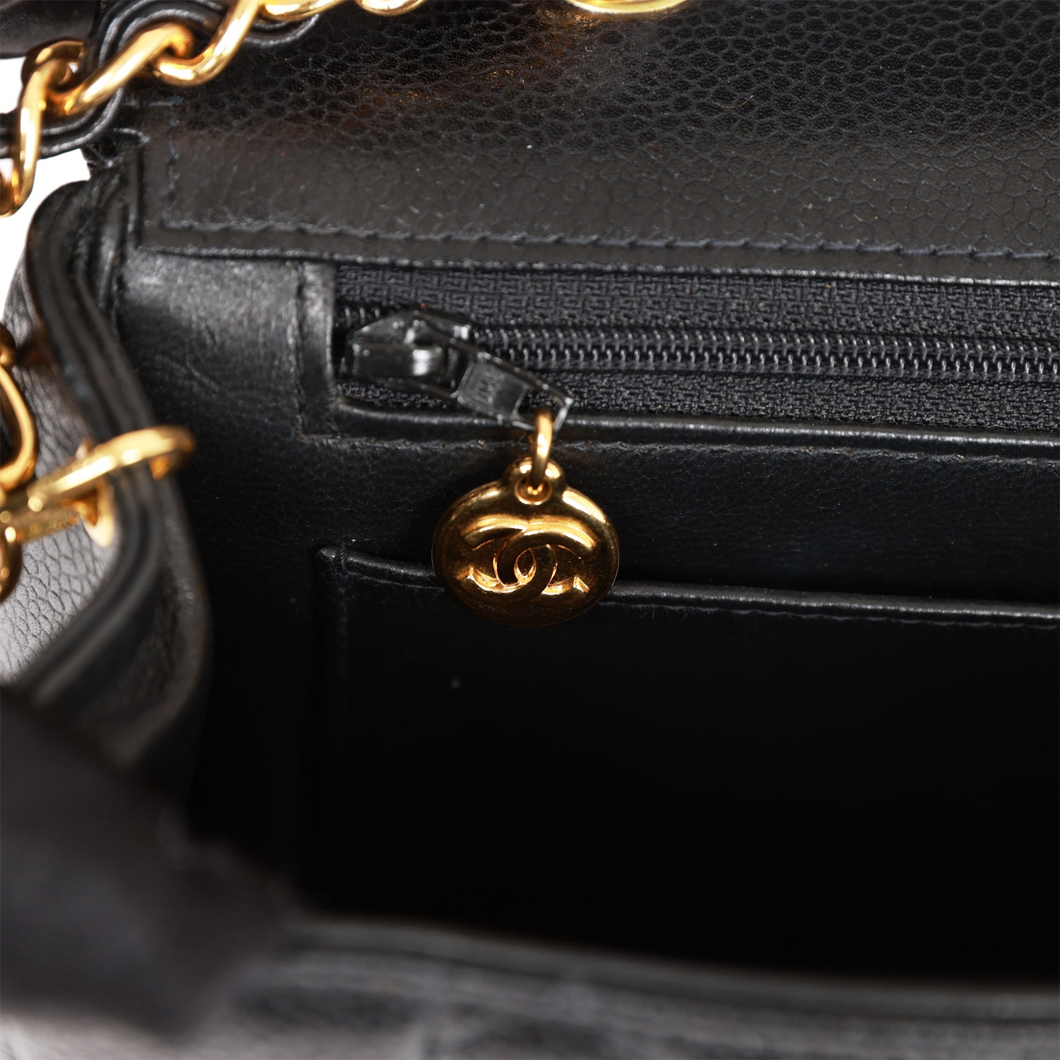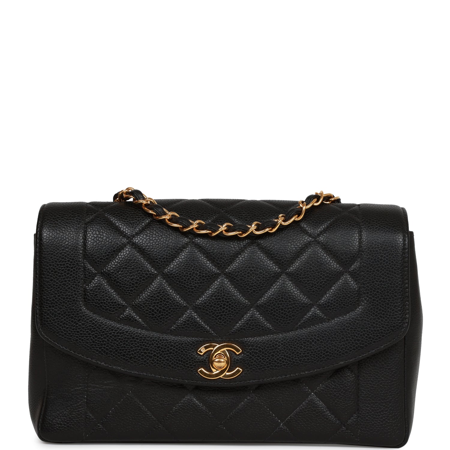 Vintage Chanel Medium Diana Flap Bag Black Caviar Gold Hardware