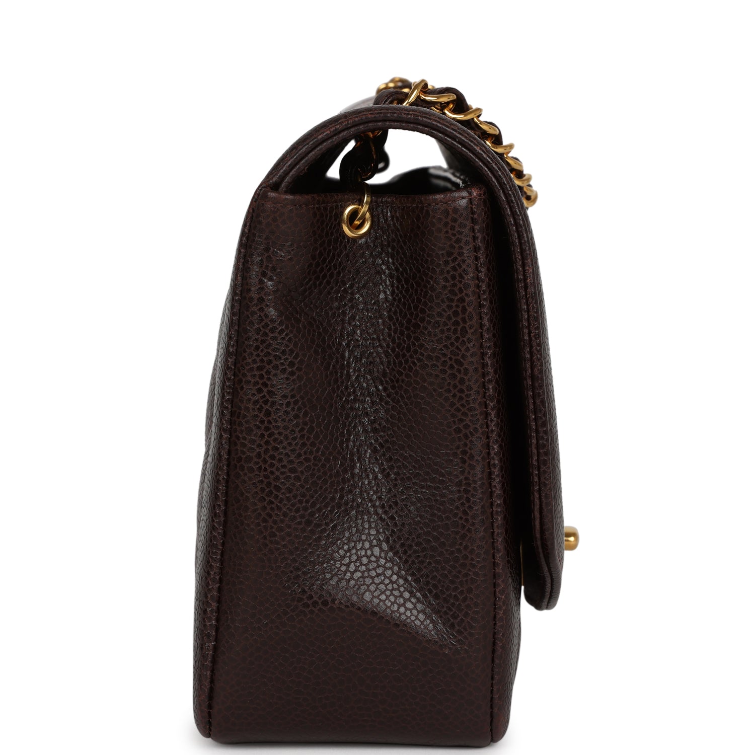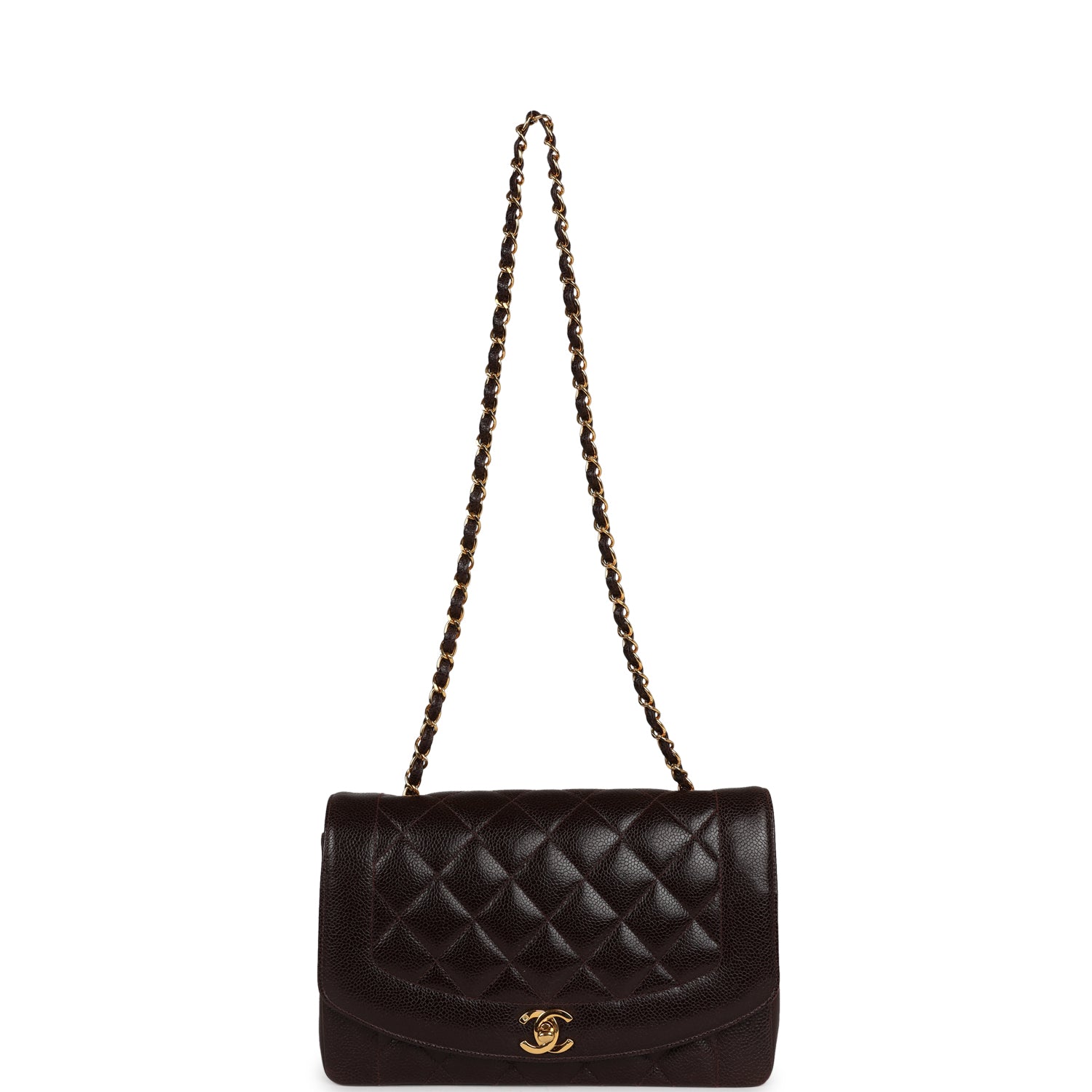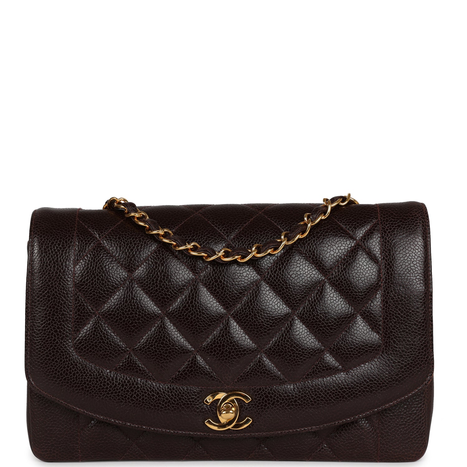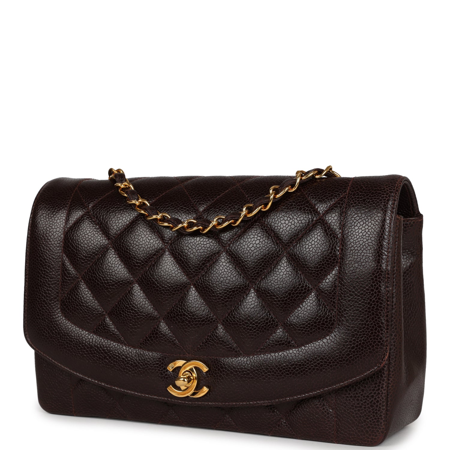Vintage Chanel Medium Diana Flap Bag Brown Caviar Gold Hardware