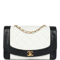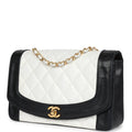 Vintage Chanel Medium Diana Flap Bag White and Black Lambskin Gold Hardware