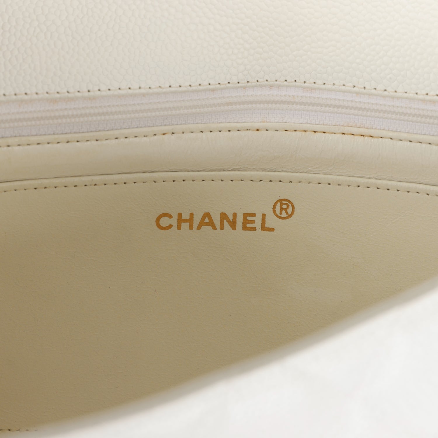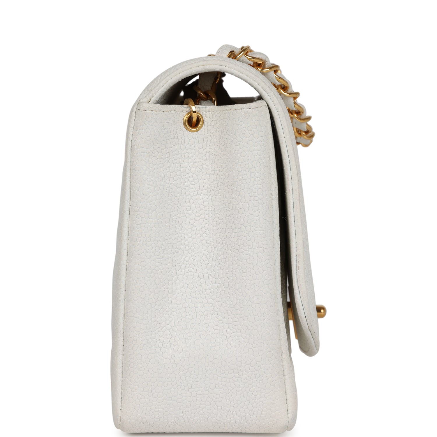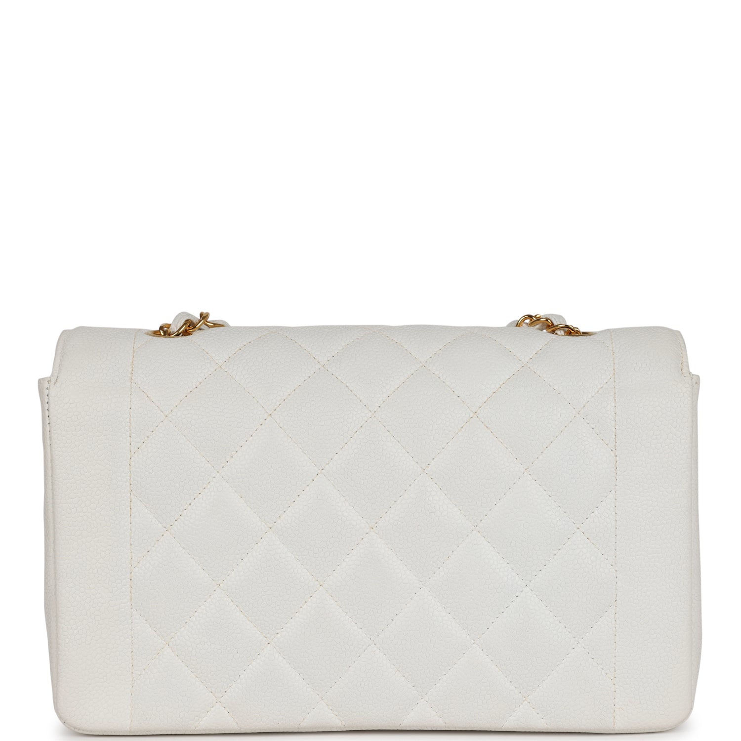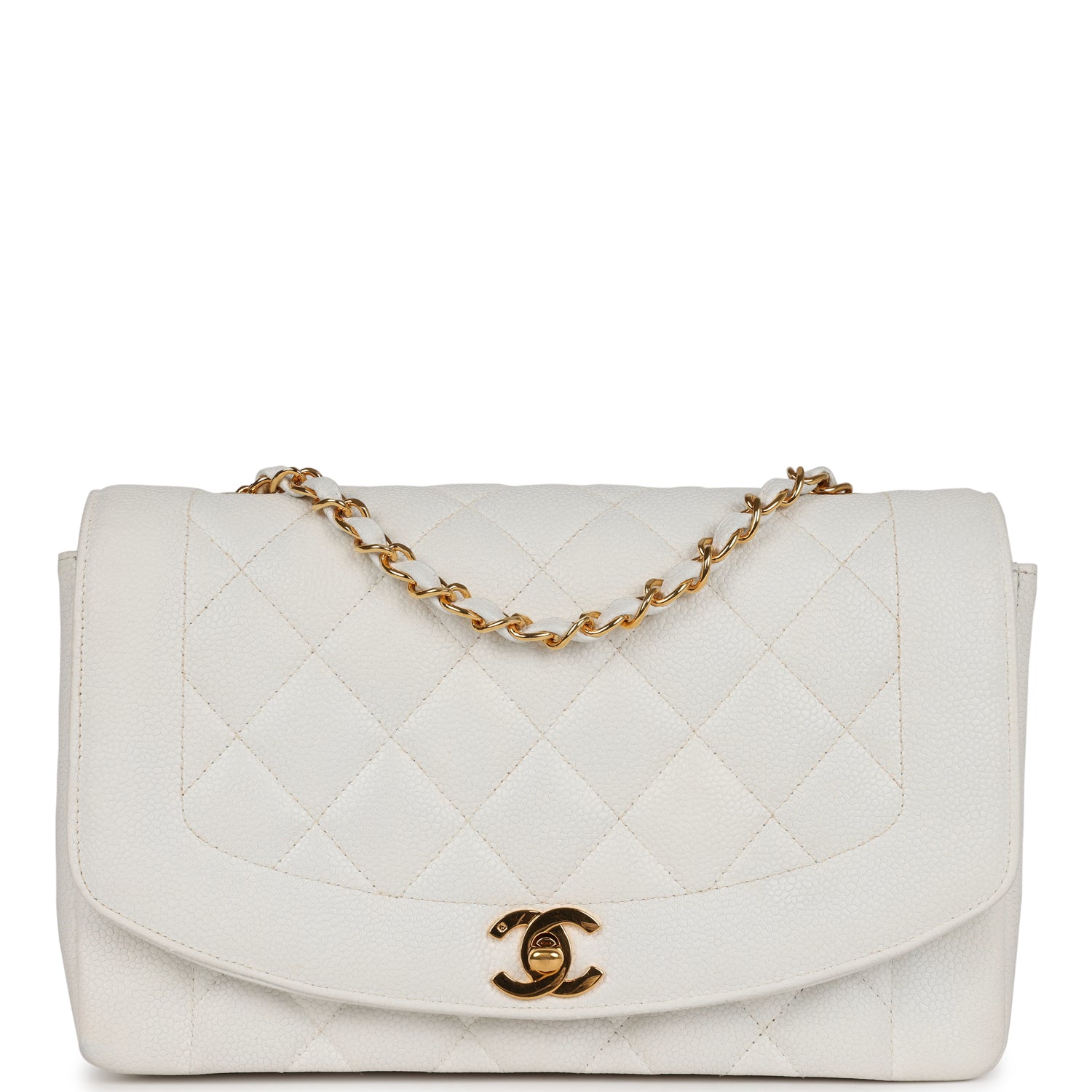 Vintage Chanel Medium Diana Flap Bag White Caviar Gold Hardware