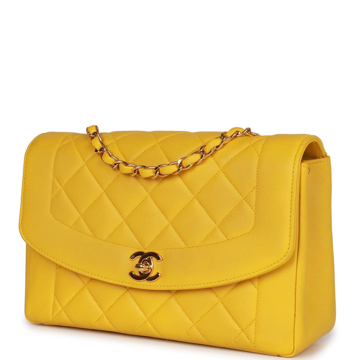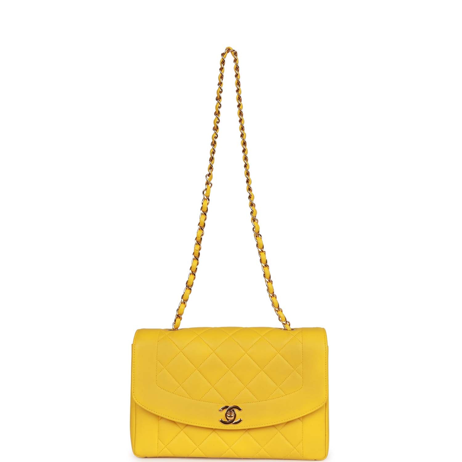 Vintage Chanel Medium Diana Flap Bag Yellow Lambskin Gold Hardware