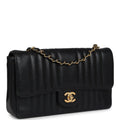 Vintage Chanel Medium Vertical Flap Bag Black Caviar Gold Hardware