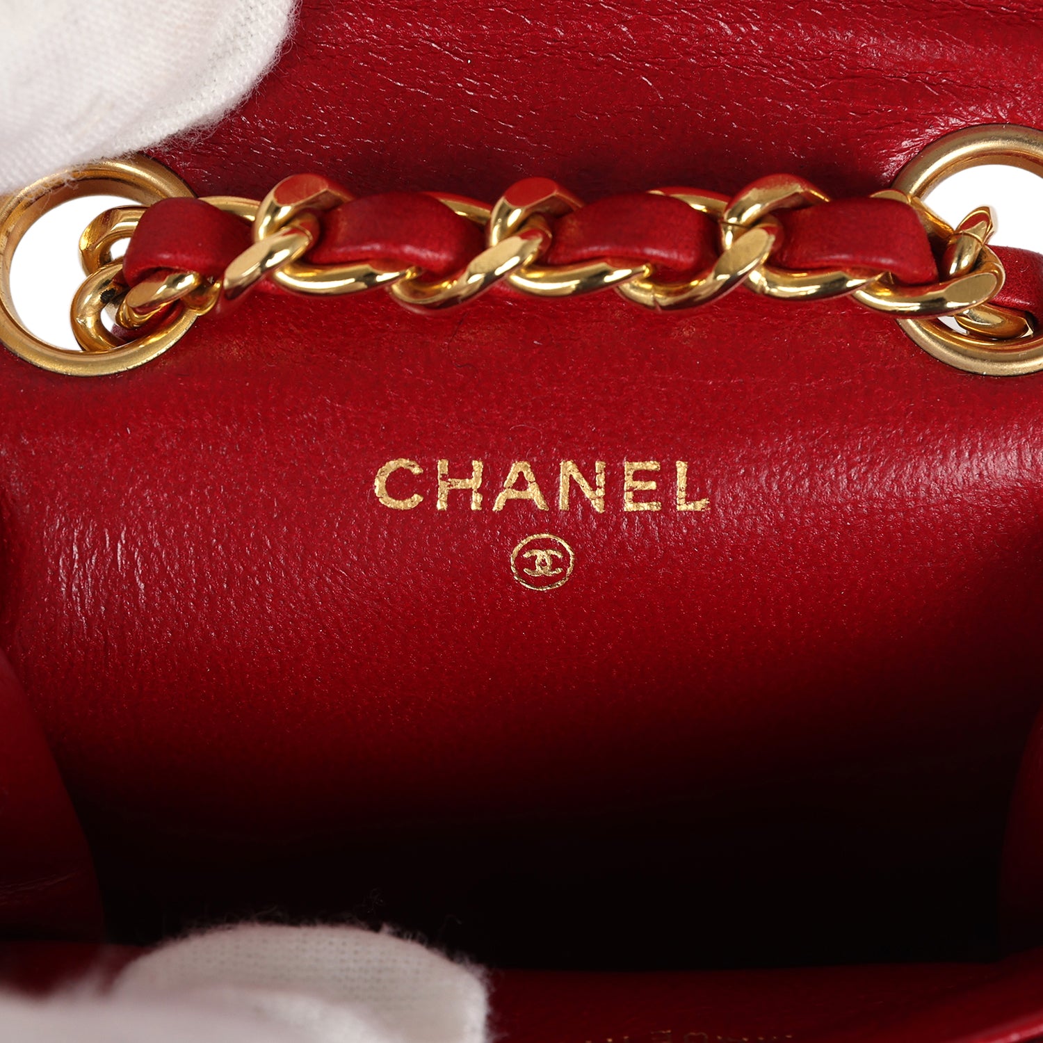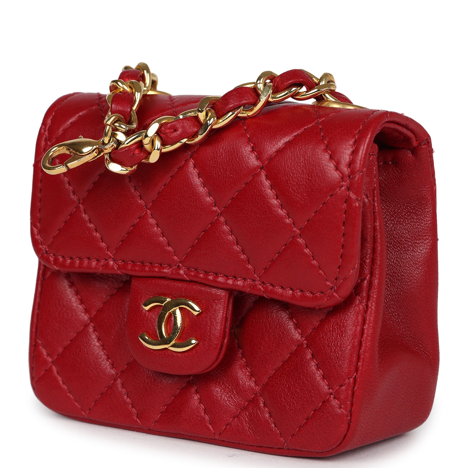 Vintage Chanel Micro Belt Flap Bag Red Lambskin Gold Hardware