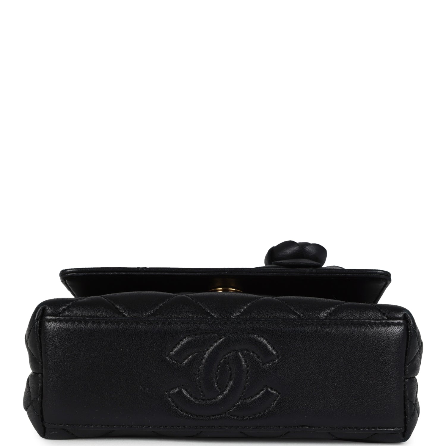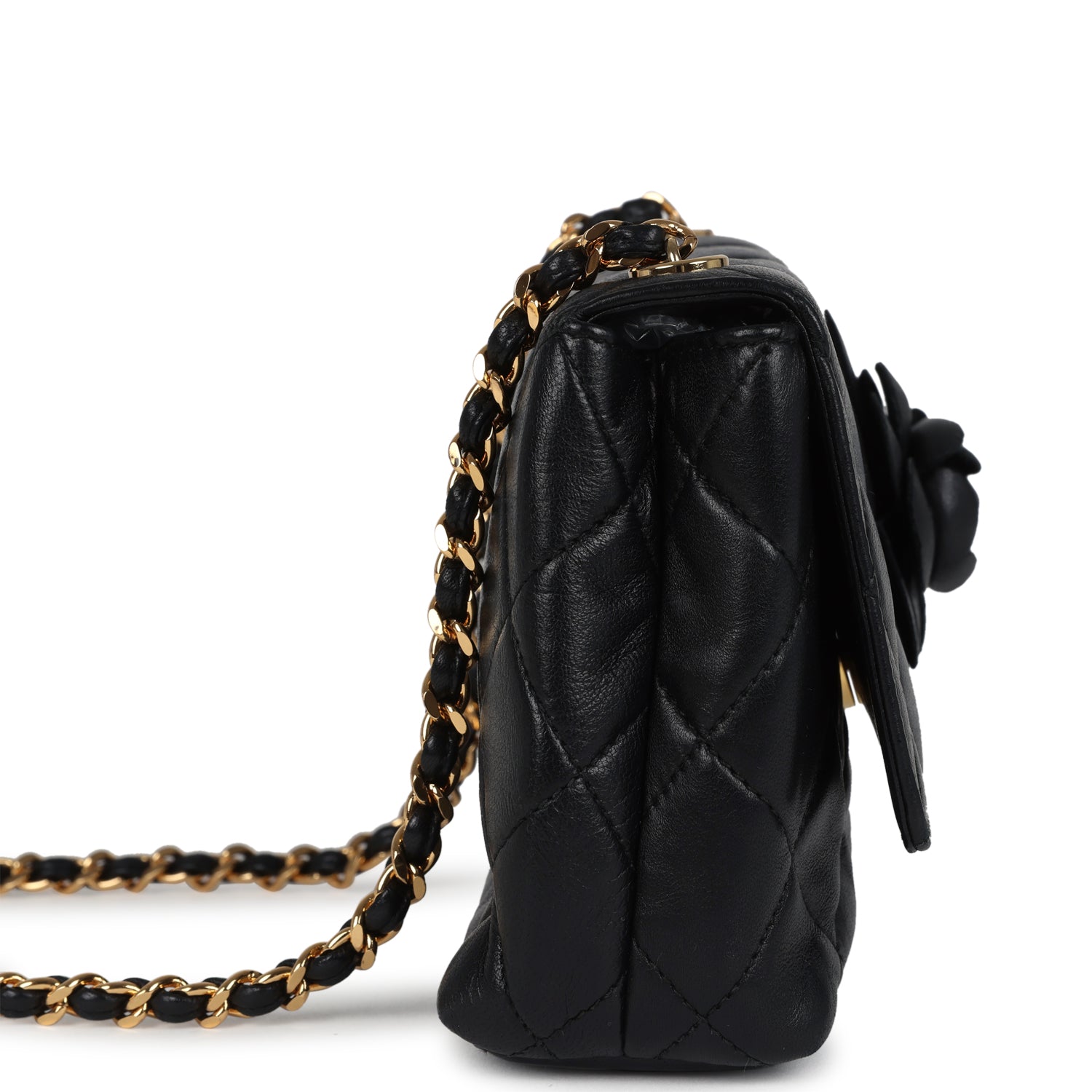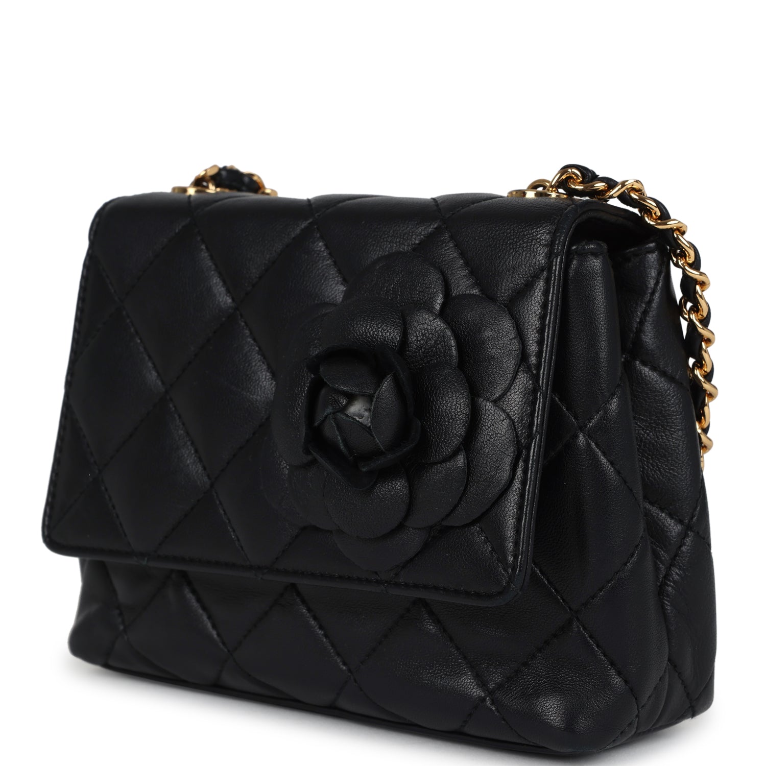 Vintage Chanel Mini Camellia Flap Bag Black Lambskin Gold Hardware