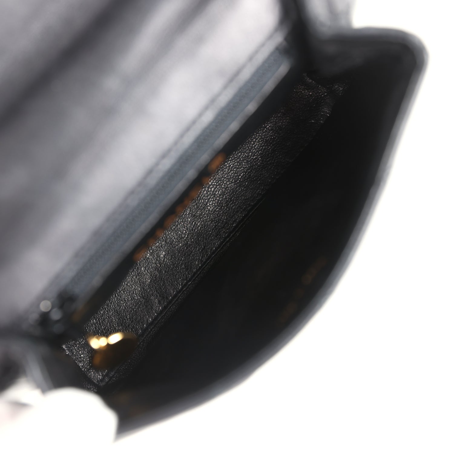 The interior is lined in black leather and has one zip pocket on the back wall.