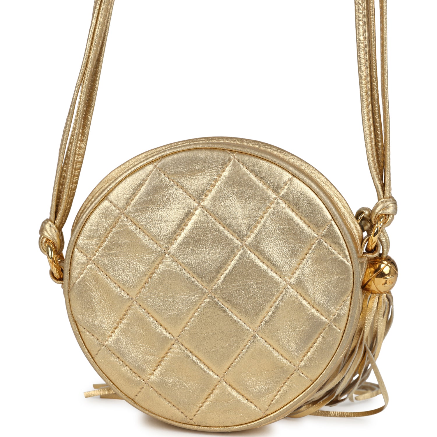 Vintage Chanel Mini CC Round Crossbody Bag Gold Lambskin Gold Hardware