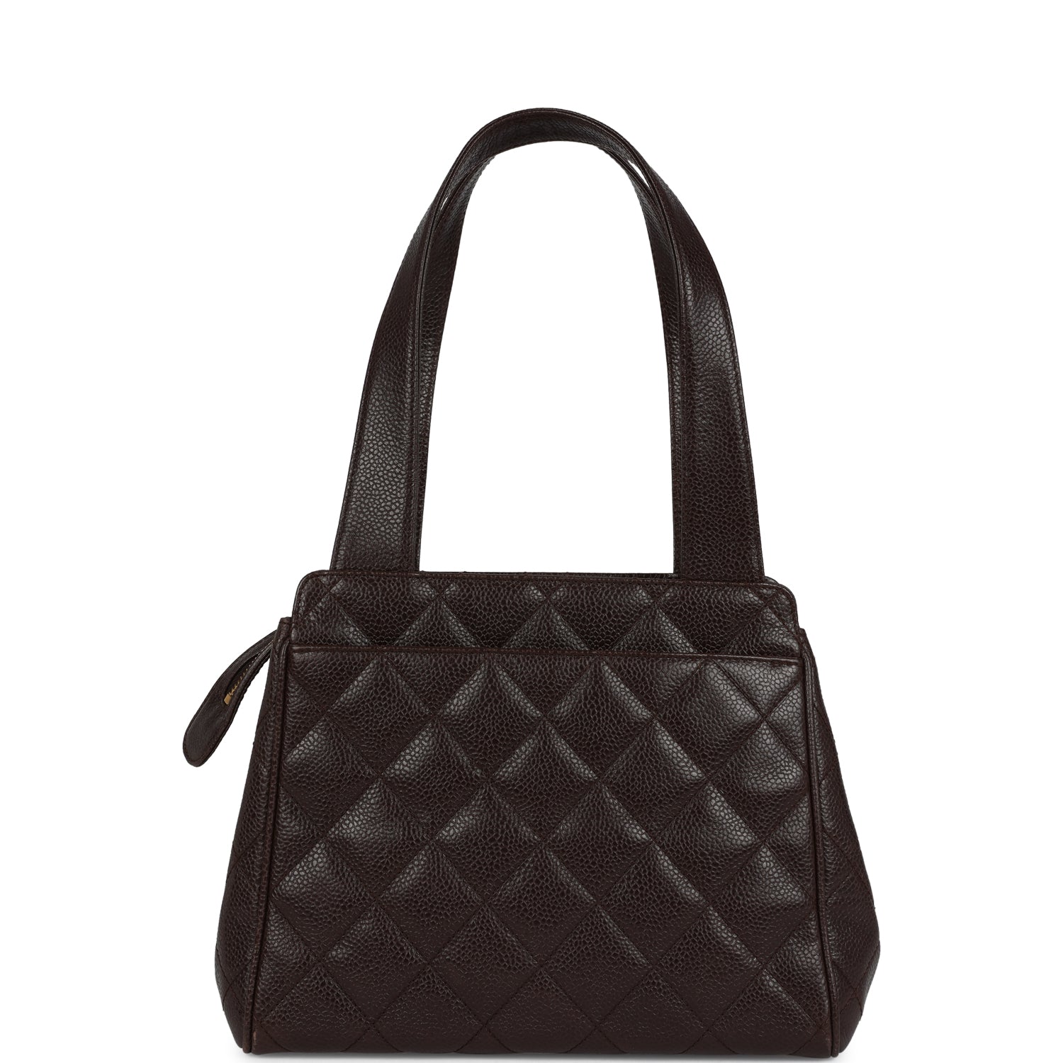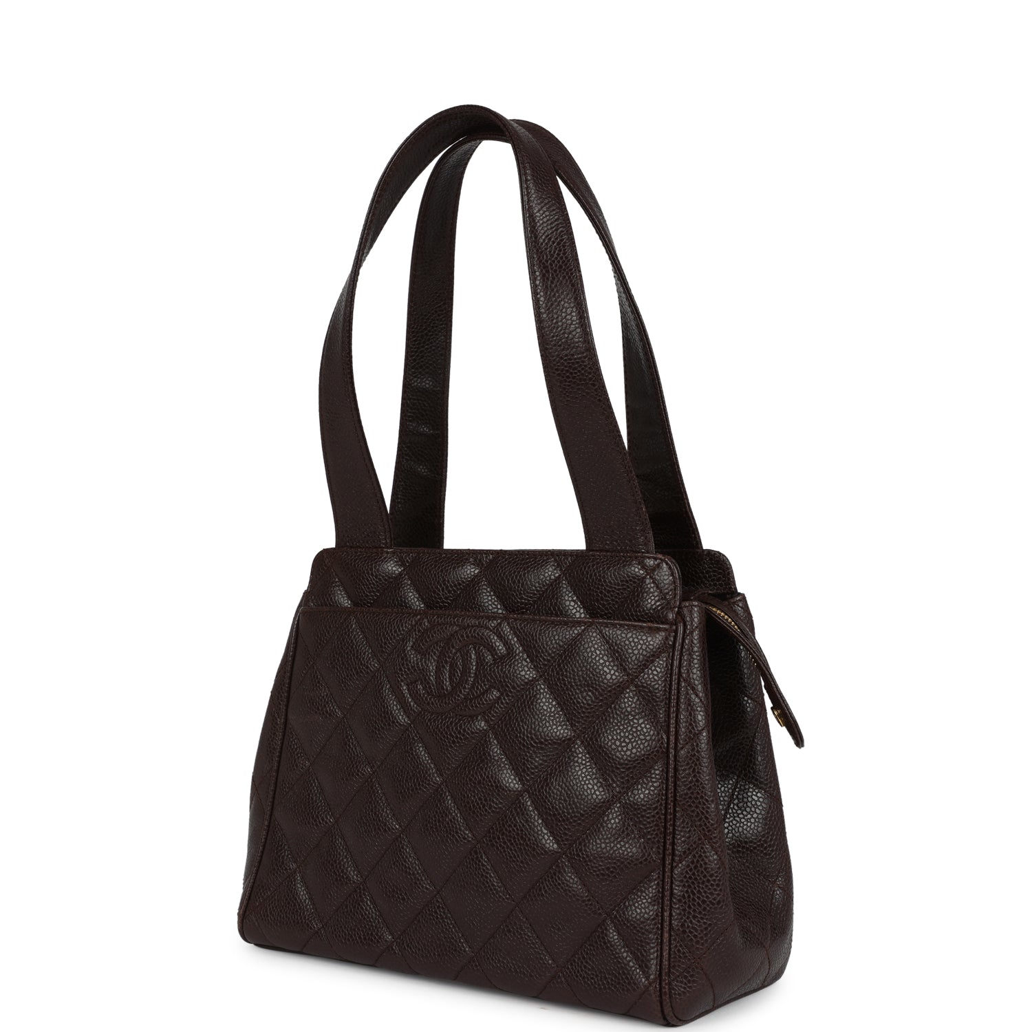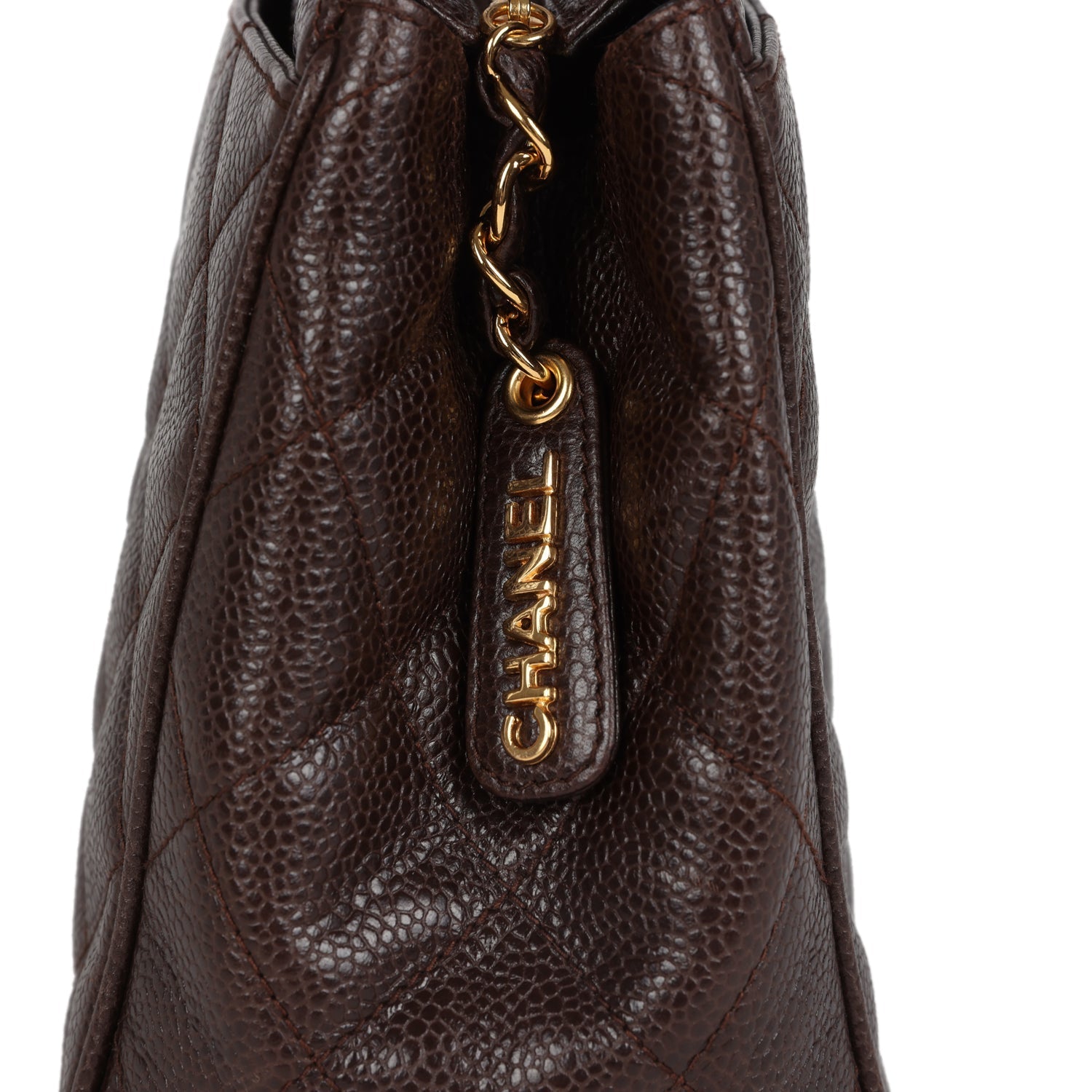 Vintage Chanel Mini Shopper Shoulder Bag Brown Caviar Gold Hardware