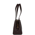This vintage Chanel Mini Shopper Shoulder Bag is of brown caviar leather with gold tone hardware, featuring one slip pocket on the front and one slip pocket on the back, a quilted CC logo on the front pocket, two top handles, and top zipper closure with a gold tone chain and brown leather logo zipper pull.