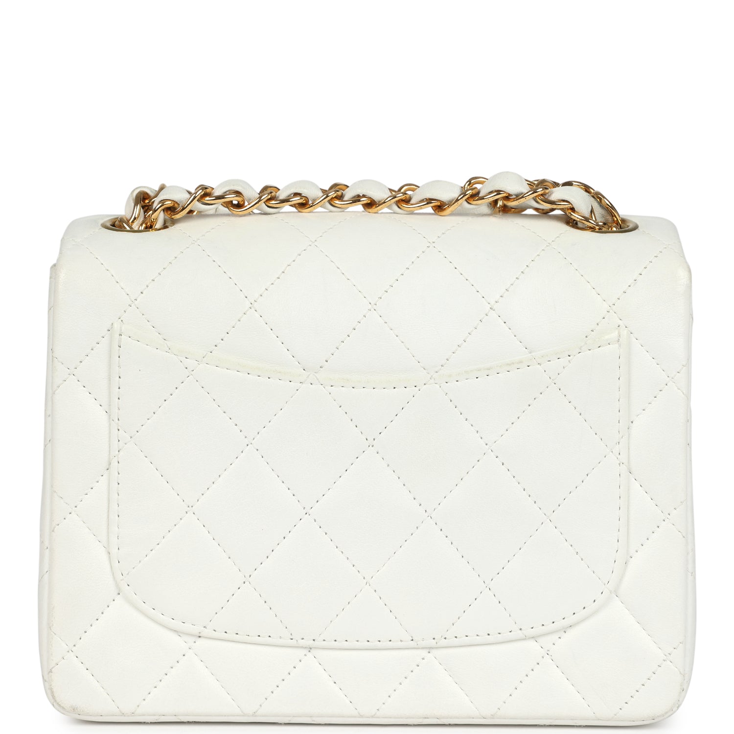 Vintage Chanel Mini Square Flap Bag White Lambskin Gold Hardware