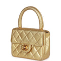 Vintage Chanel Mini Top Handle Kelly Child Flap Bag Gold Metallic Lambskin Gold Hardware
