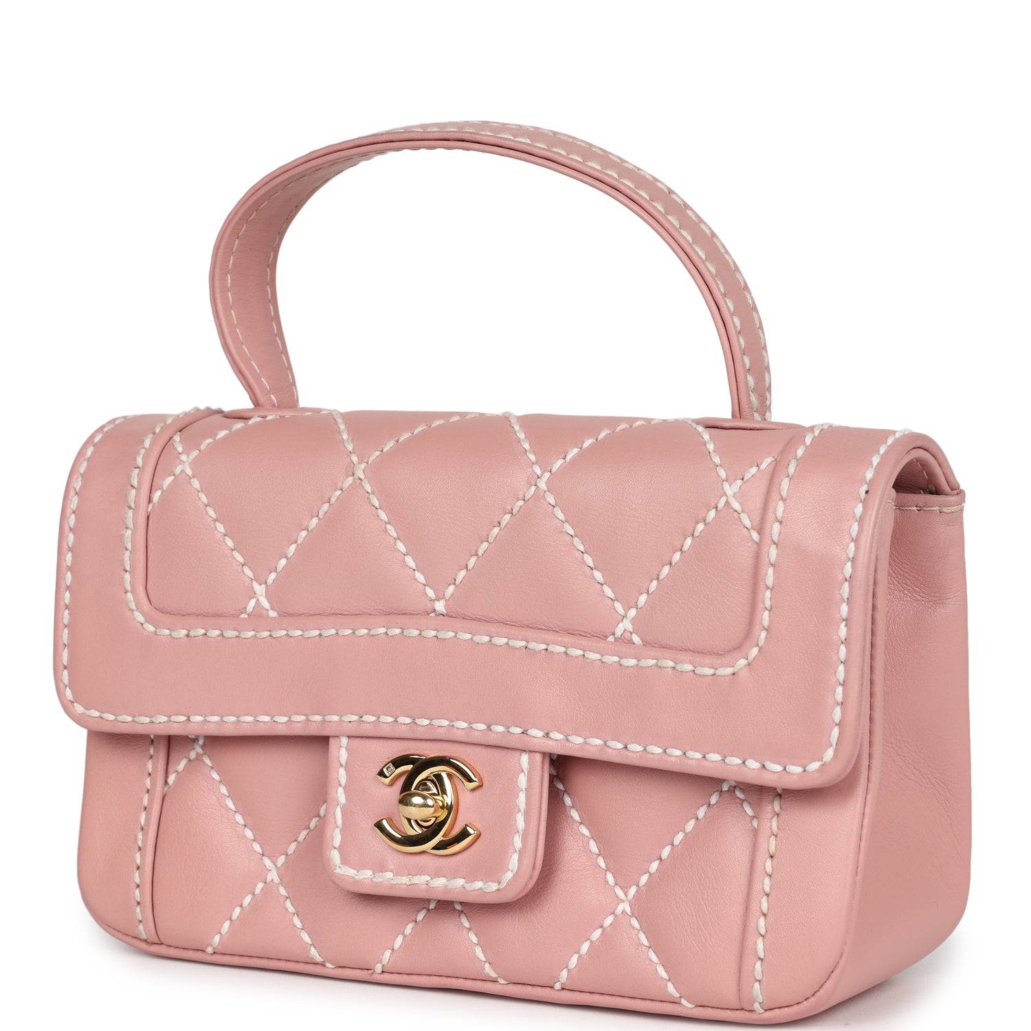 Vintage Chanel Mini Wild Stitch Surpique Top Handle Flap Bag Pink Calfskin Gold Hardware