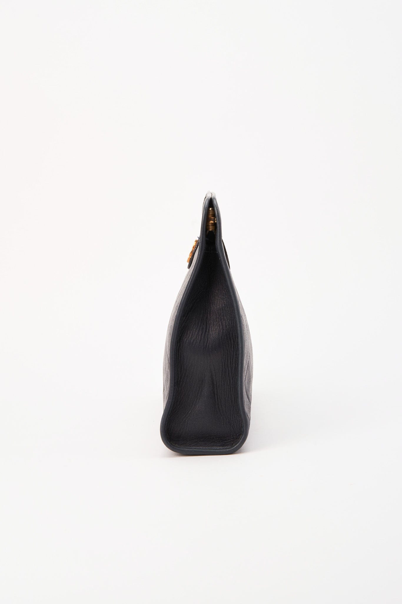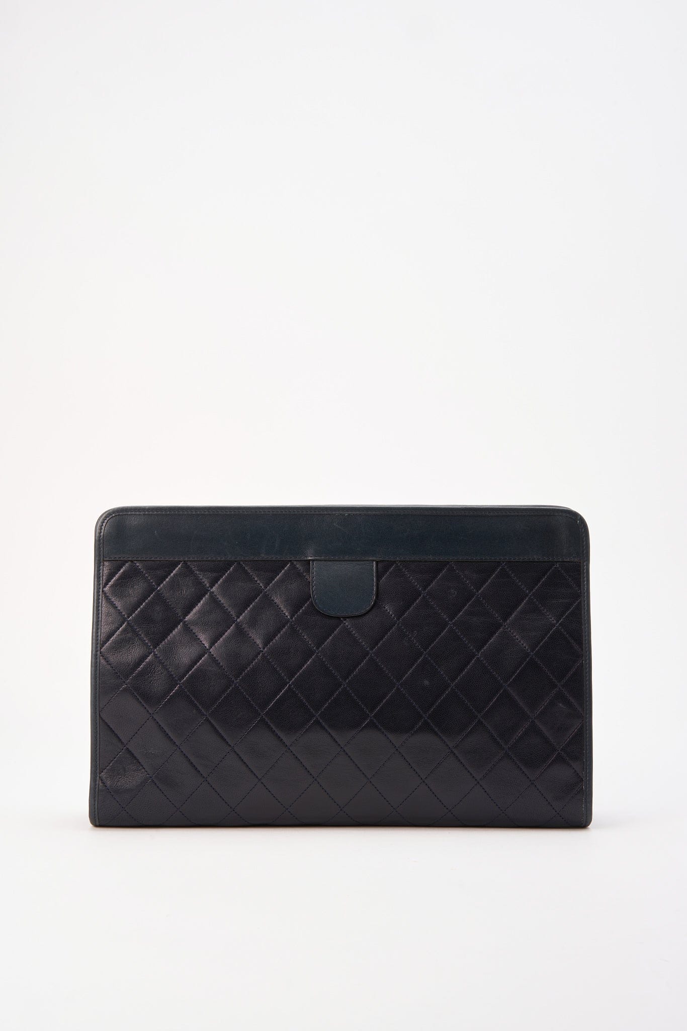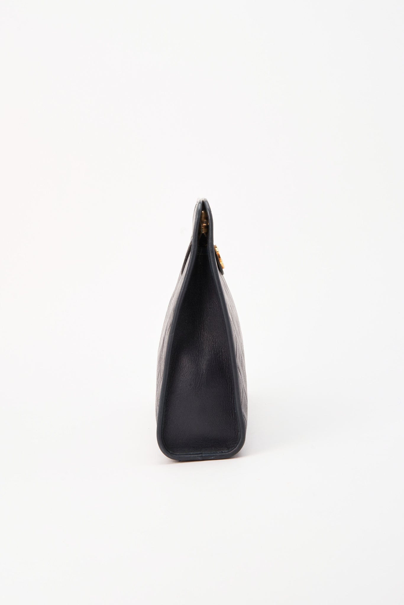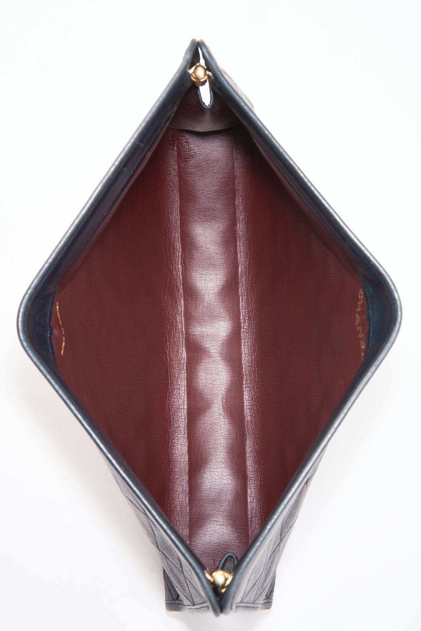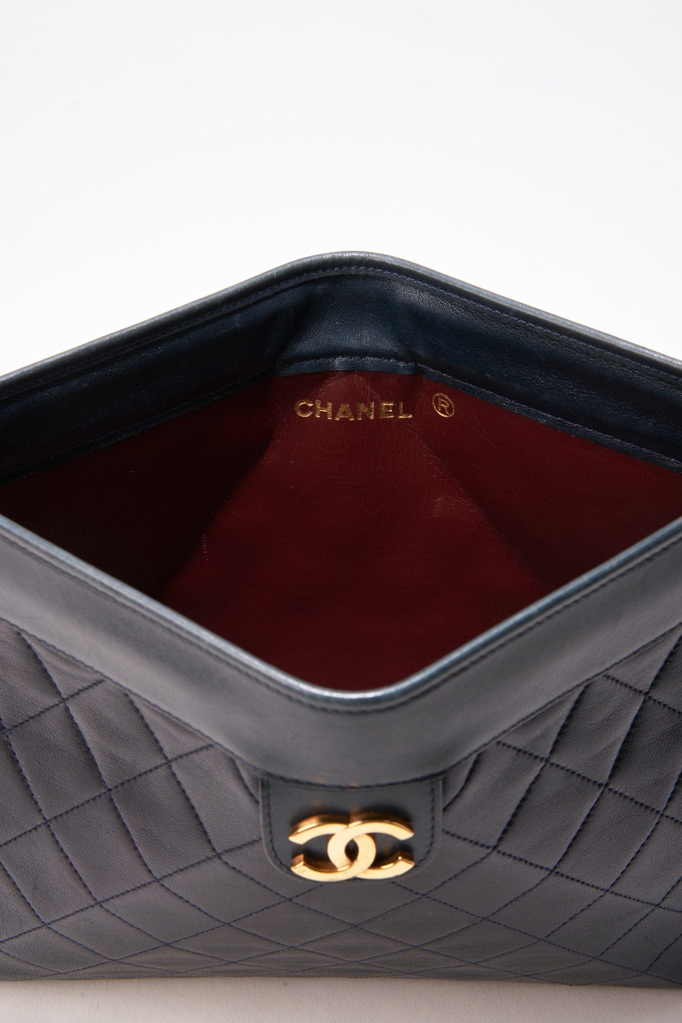 Vintage Chanel Navy Leather Clutch Bag With 24K Gold Plated Hardware
