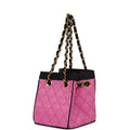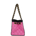 Vintage Chanel Set of Two Mini Bucket Bag & Oval Handbag Pink and Black Raffia Gold Hardware