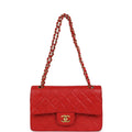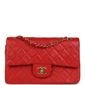 Vintage Chanel Small Classic Double Flap Bag Red Lambskin Gold Hardware