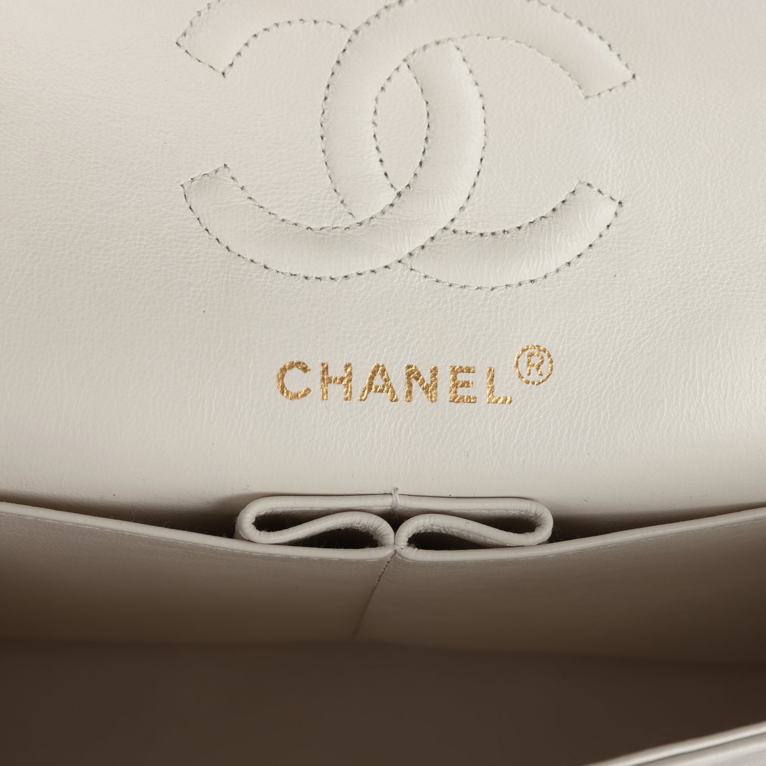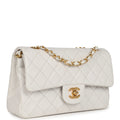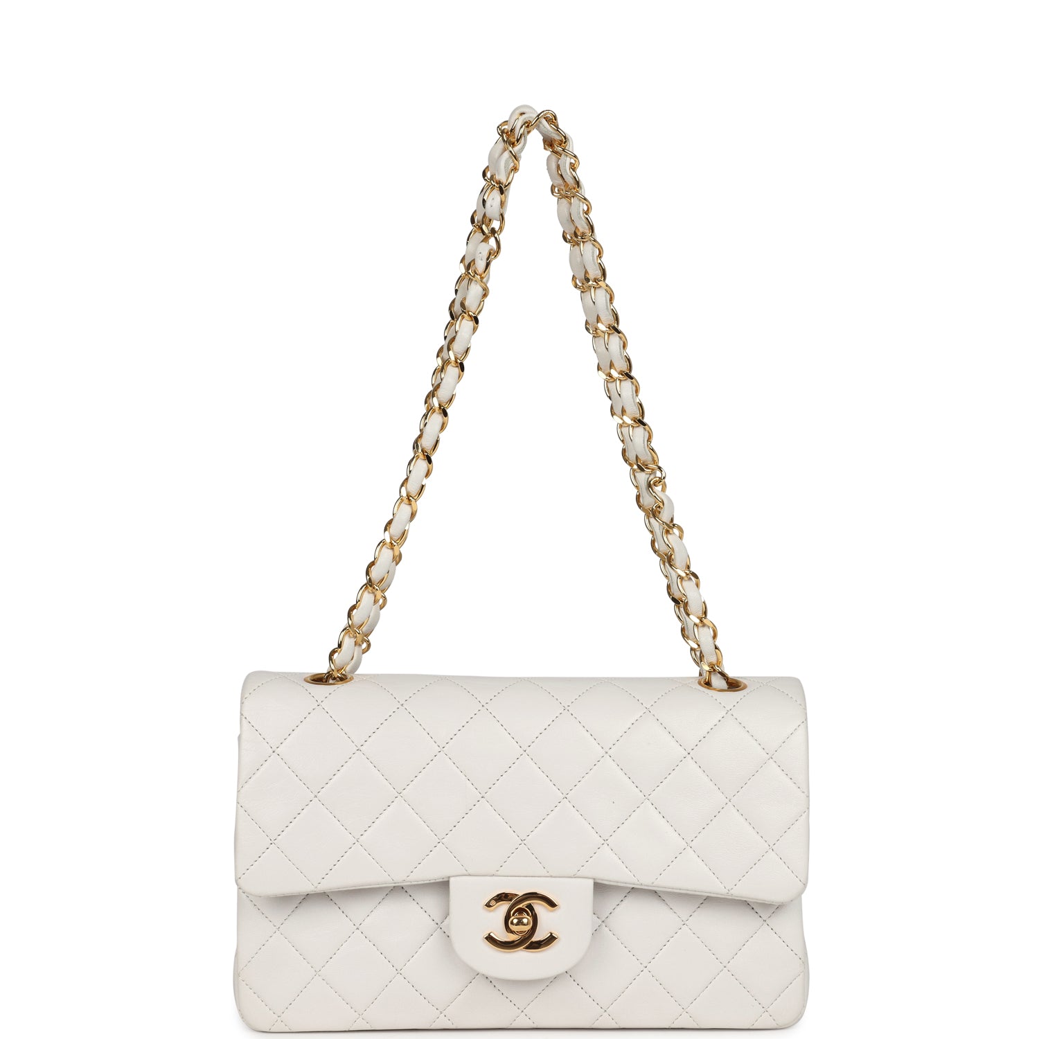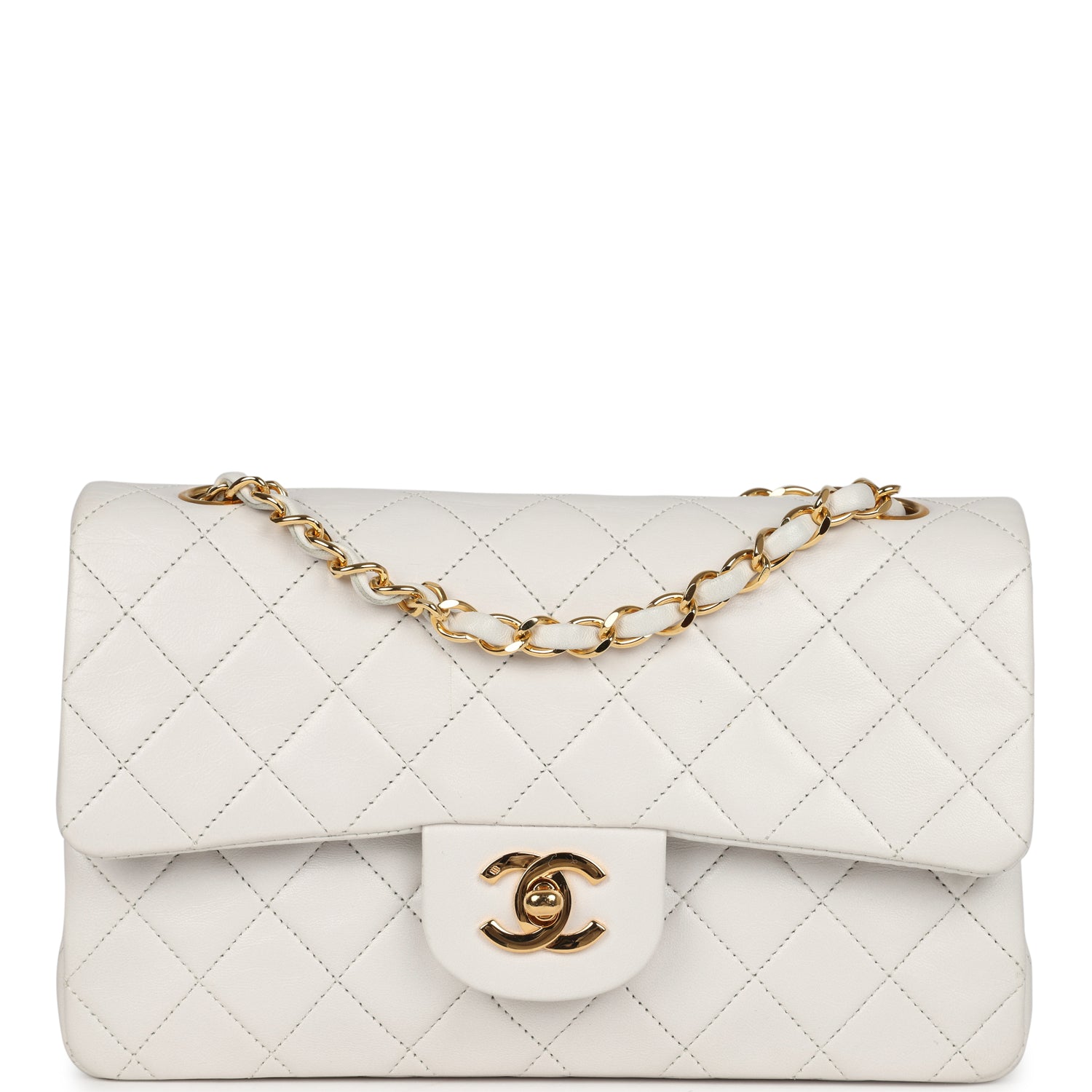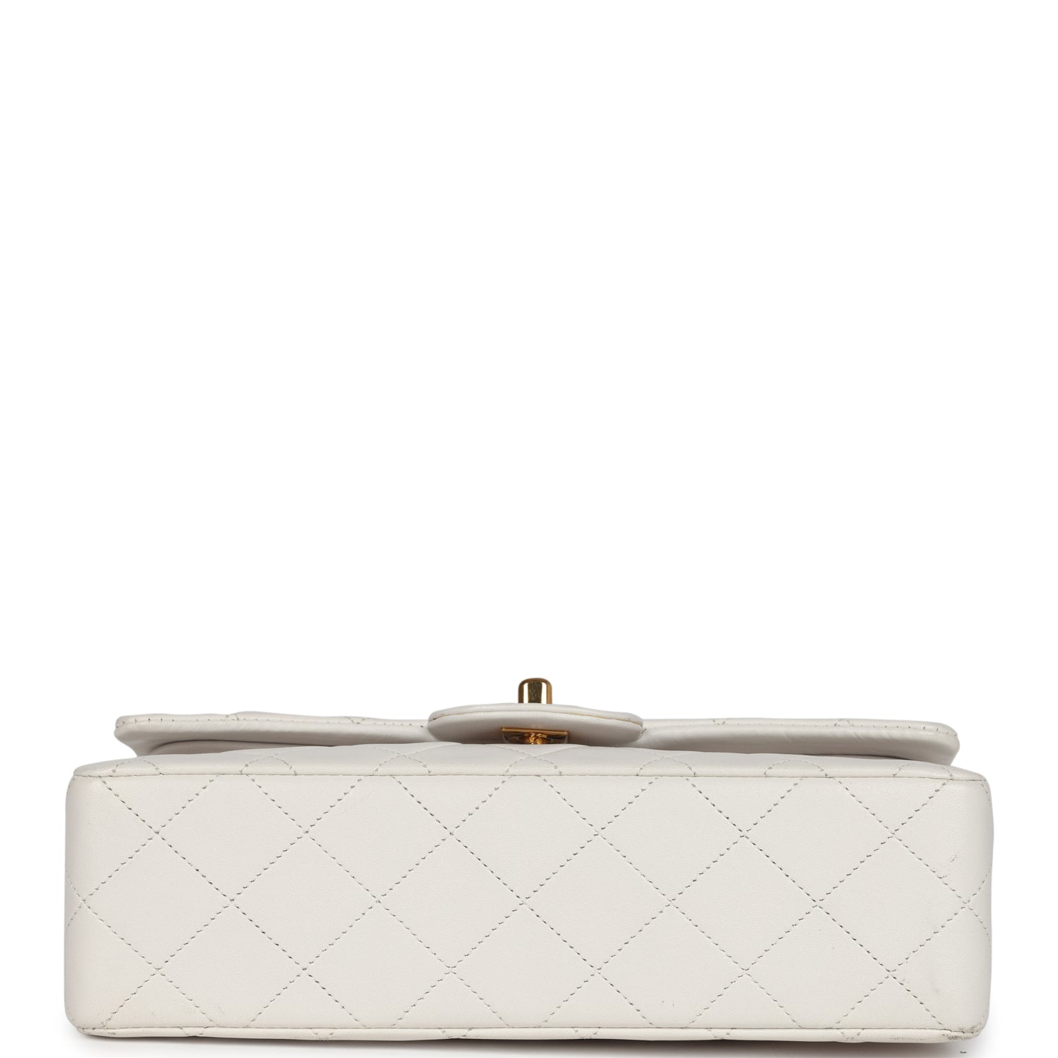 Vintage Chanel Small Classic Double Flap Bag White Lambskin Gold Hardware