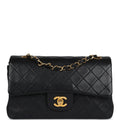 Vintage Chanel Small Classic Double Flap Black Lambskin Gold Hardware