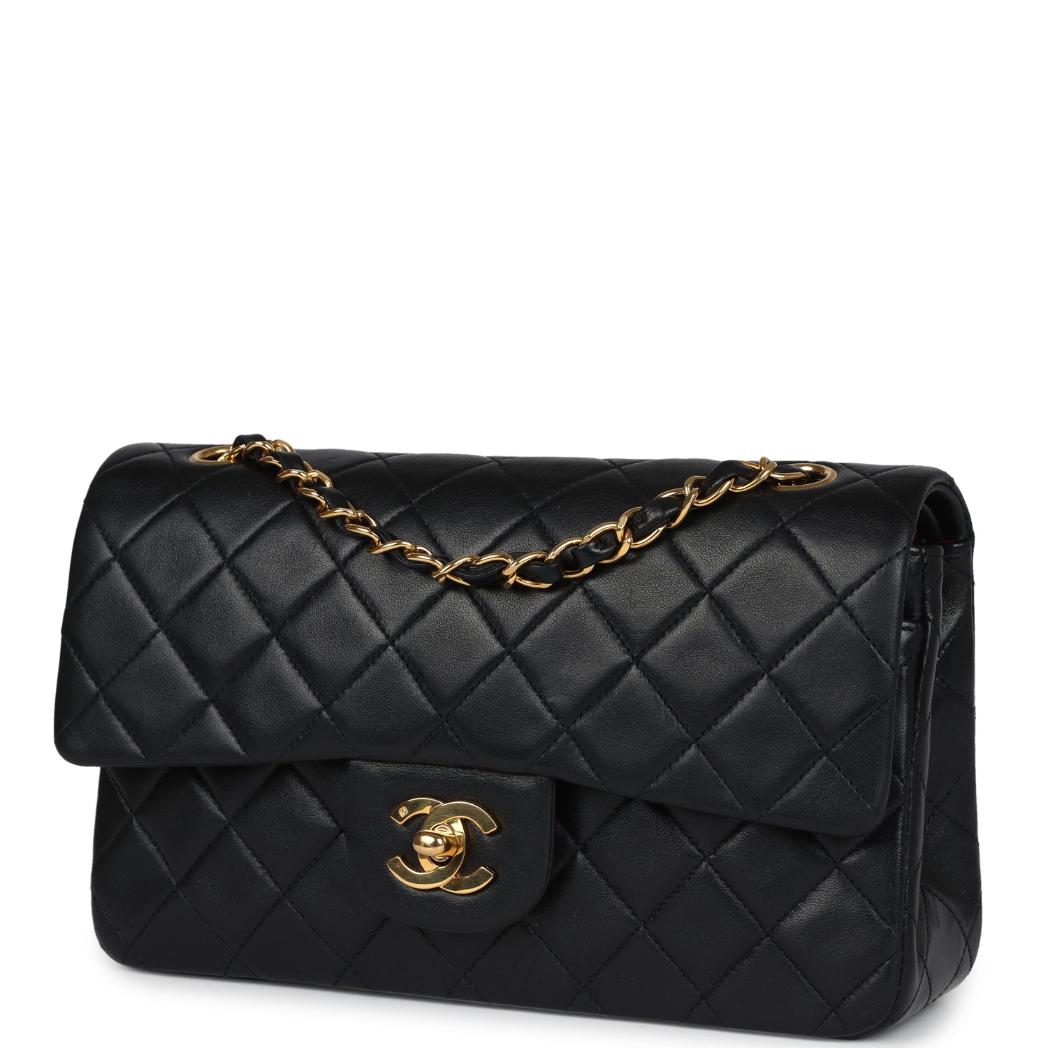 Vintage Chanel Small Classic Double Flap Black Lambskin Gold Hardware