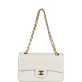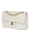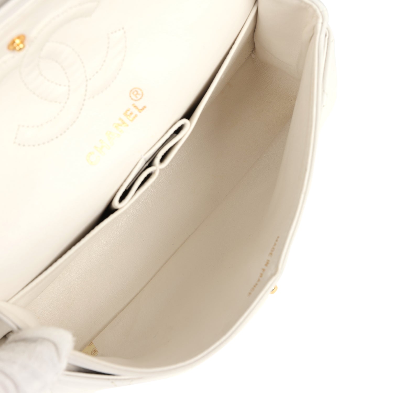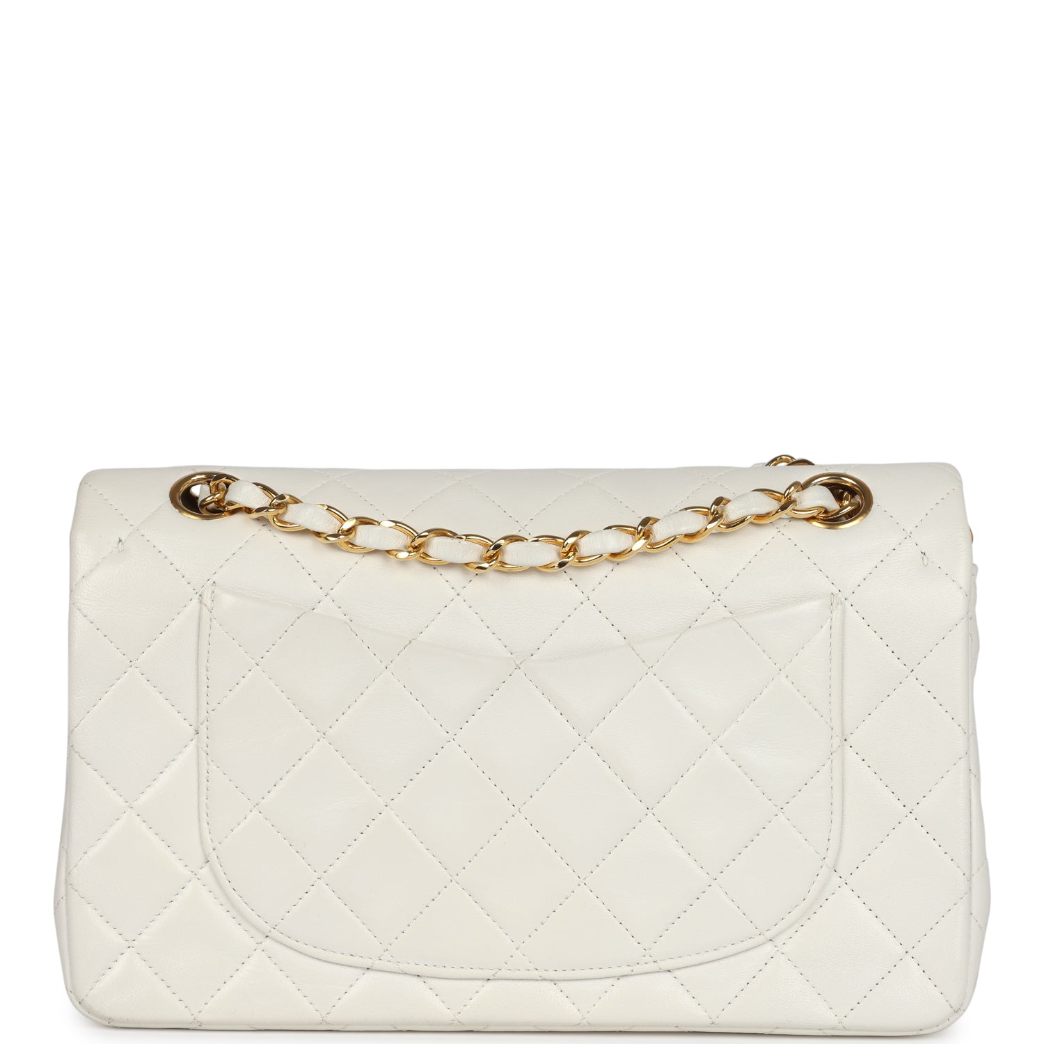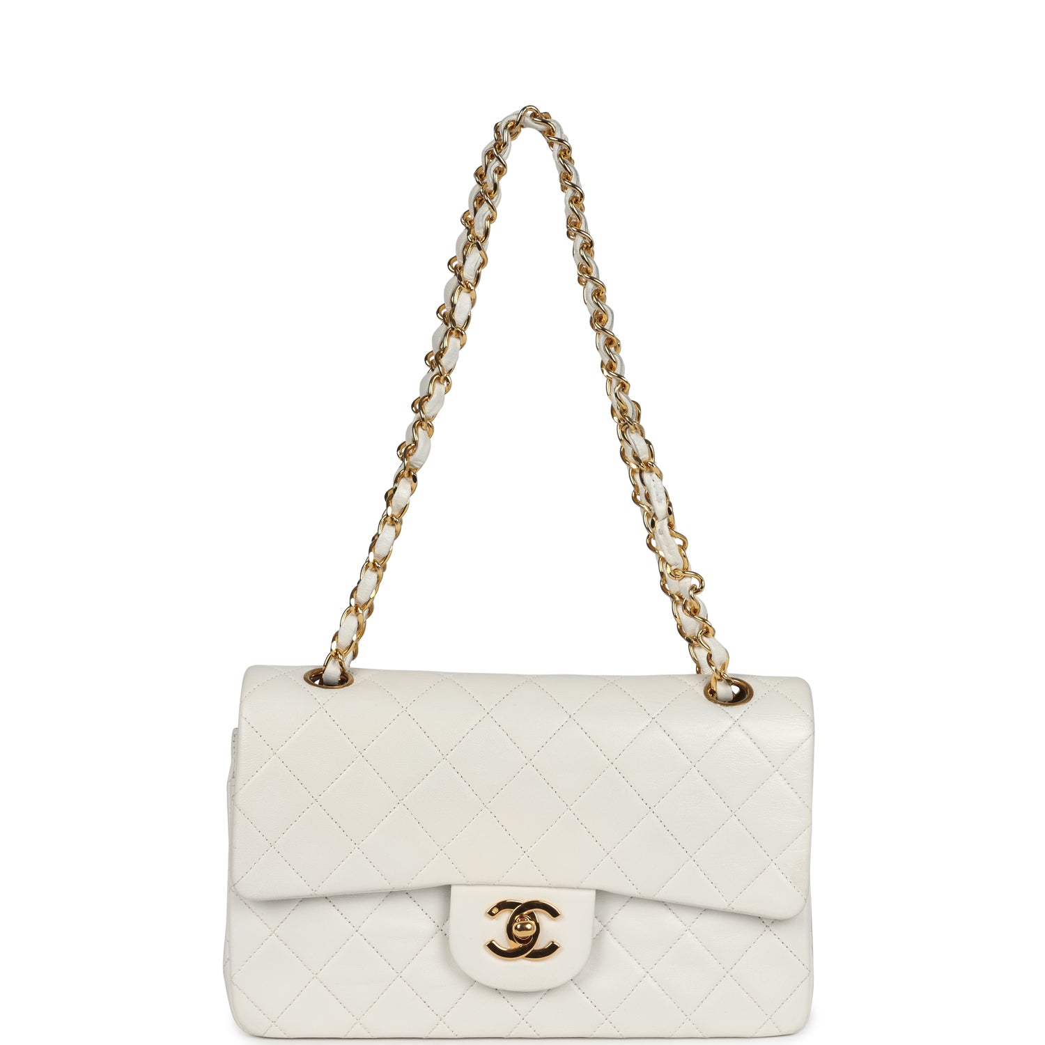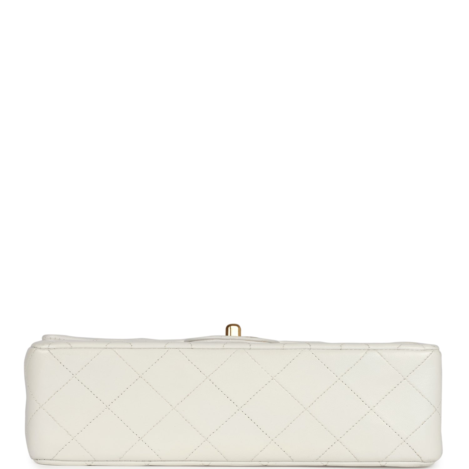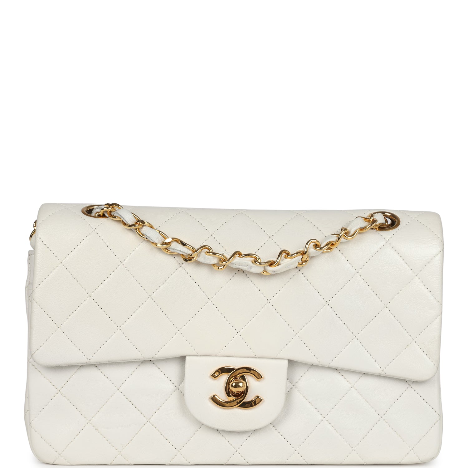 Vintage Chanel Small Classic Double Flap White Lambskin Gold Hardware