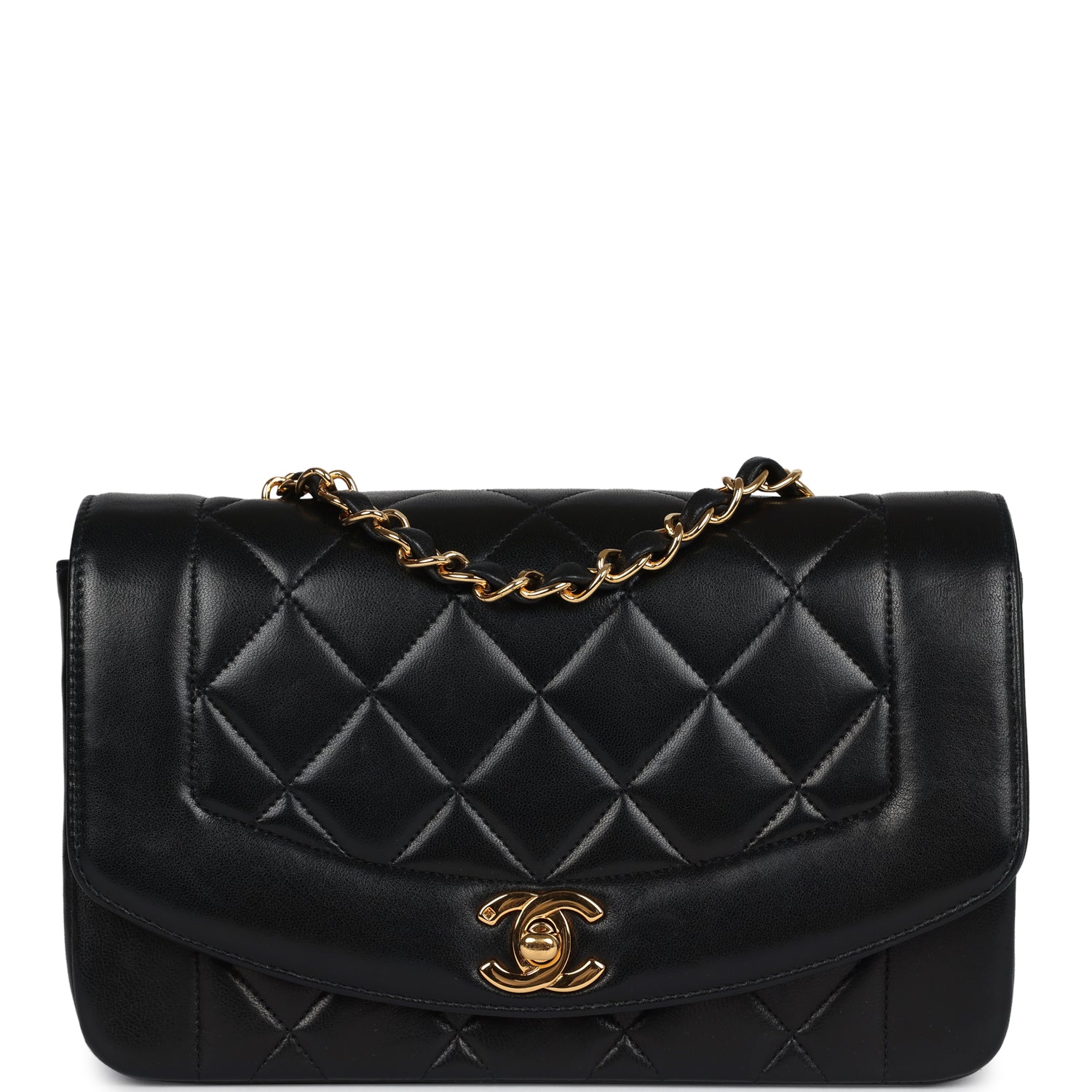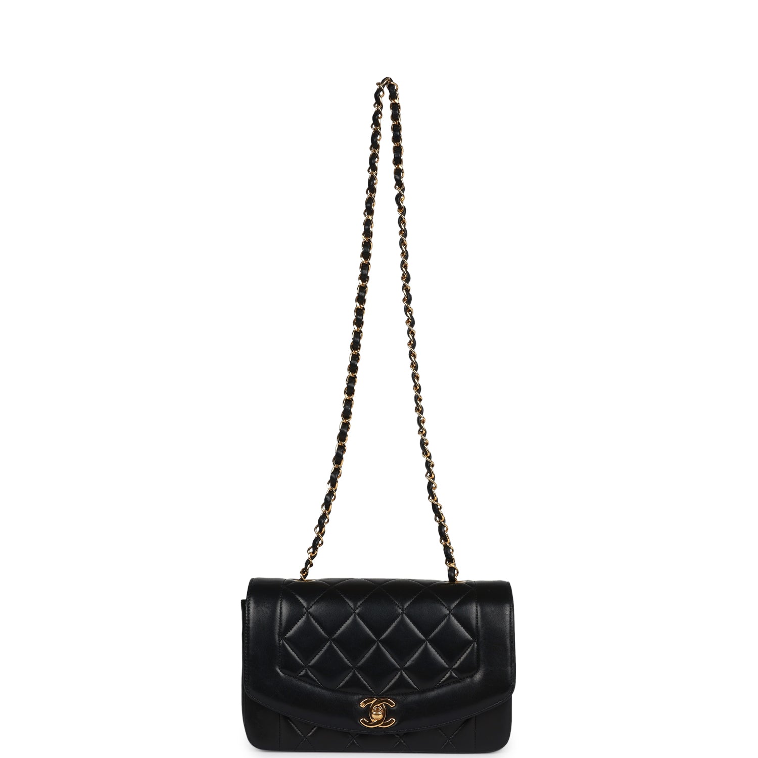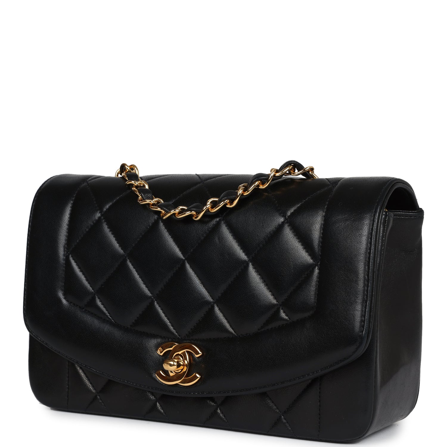 Vintage Chanel Small Diana Flap Bag Black Lambskin Gold Hardware