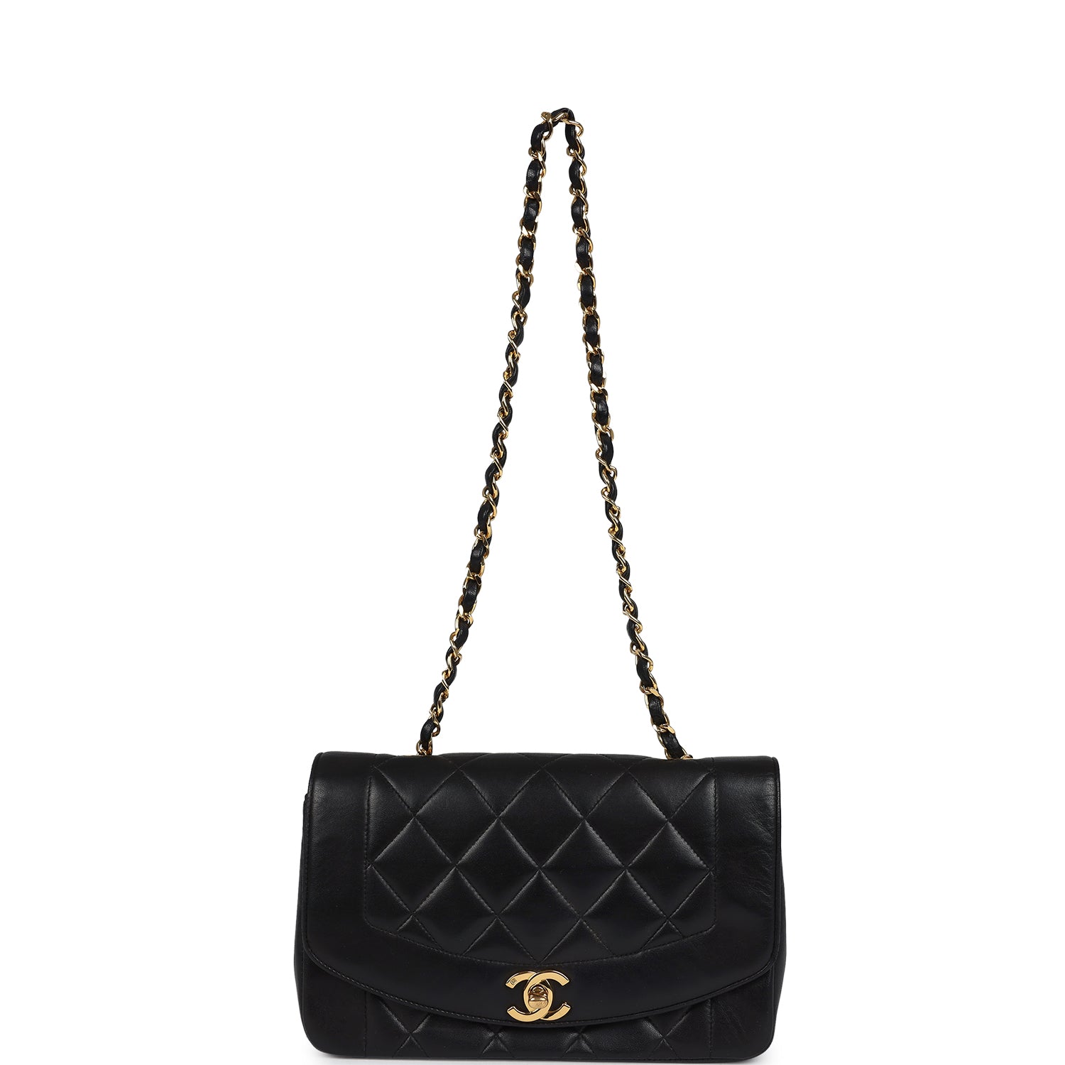 Vintage Chanel Small Diana Flap Bag Black Lambskin Gold Hardware