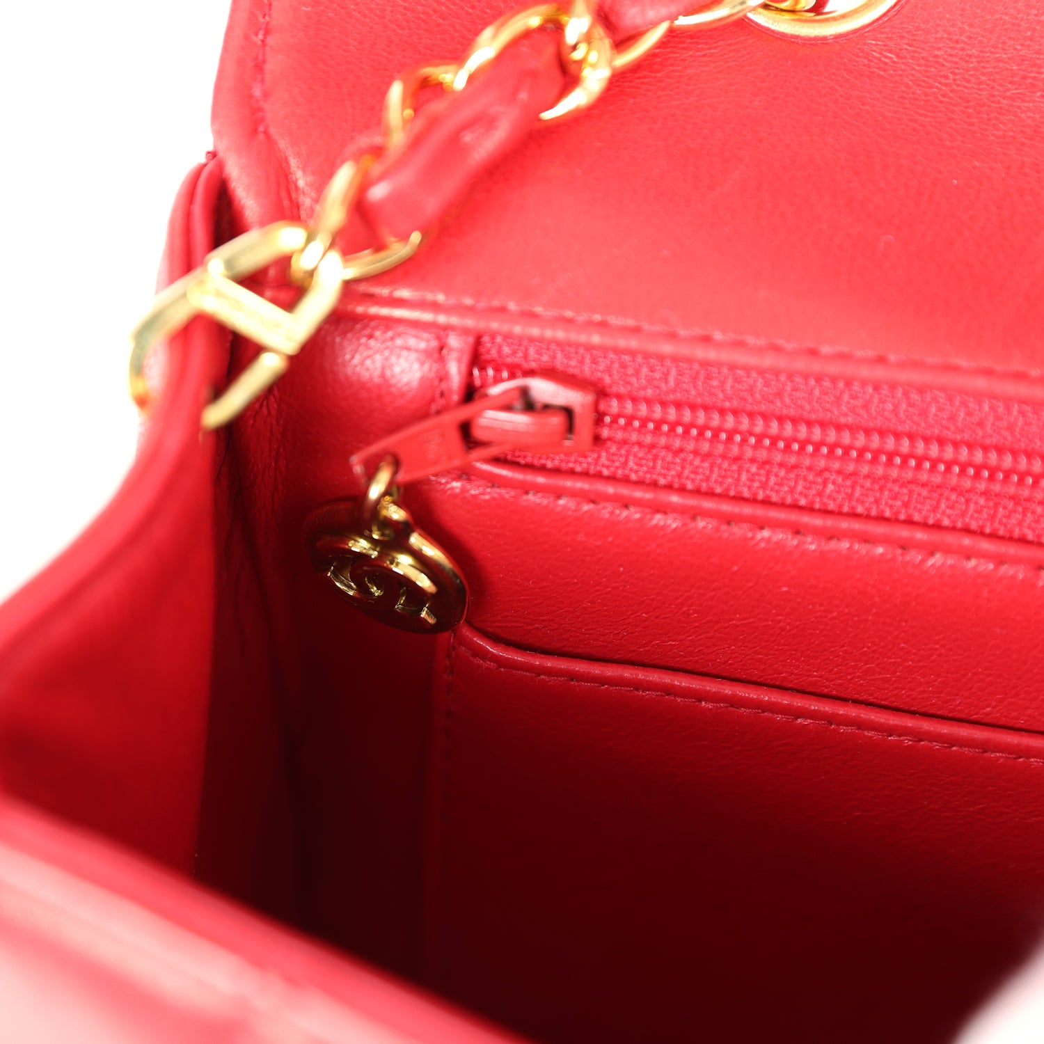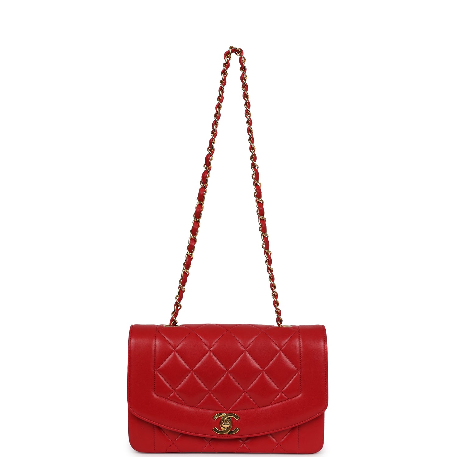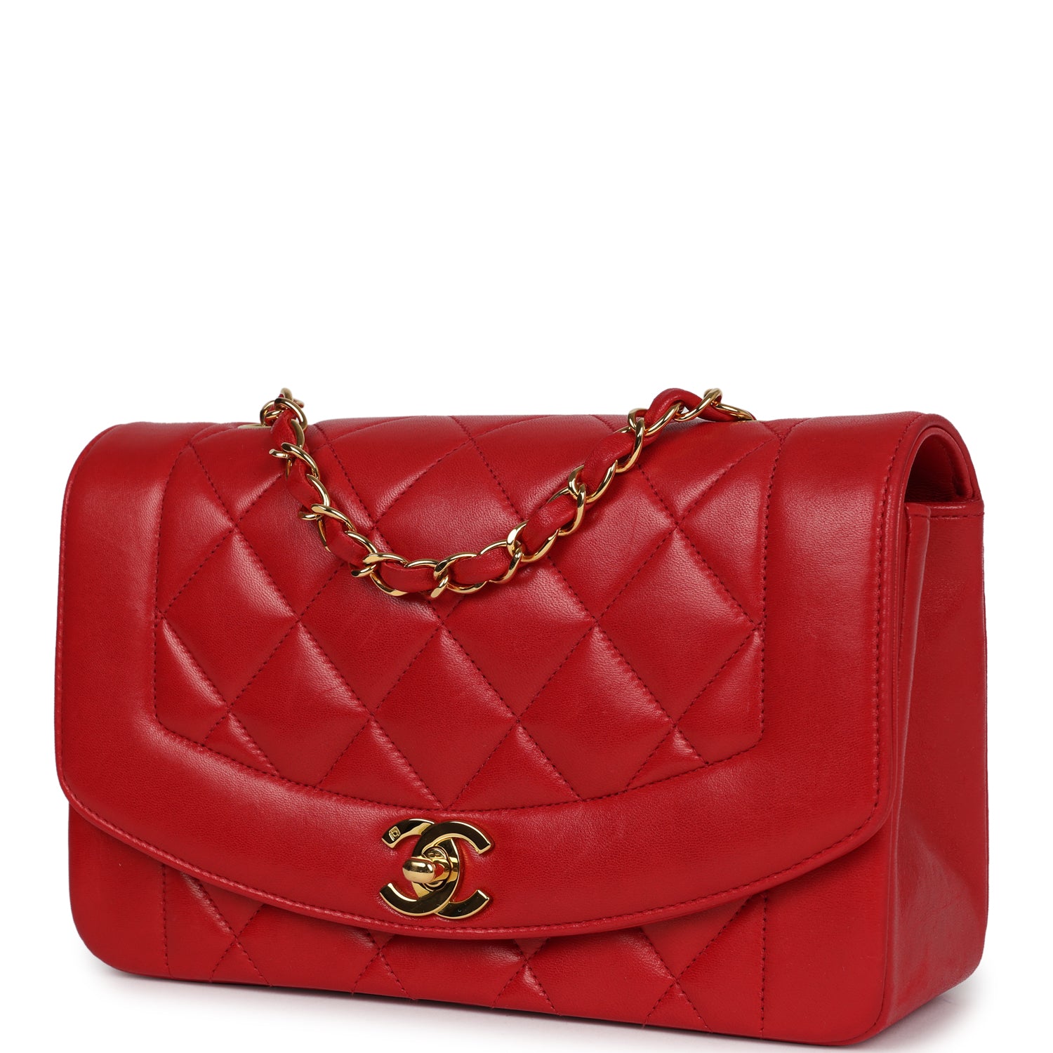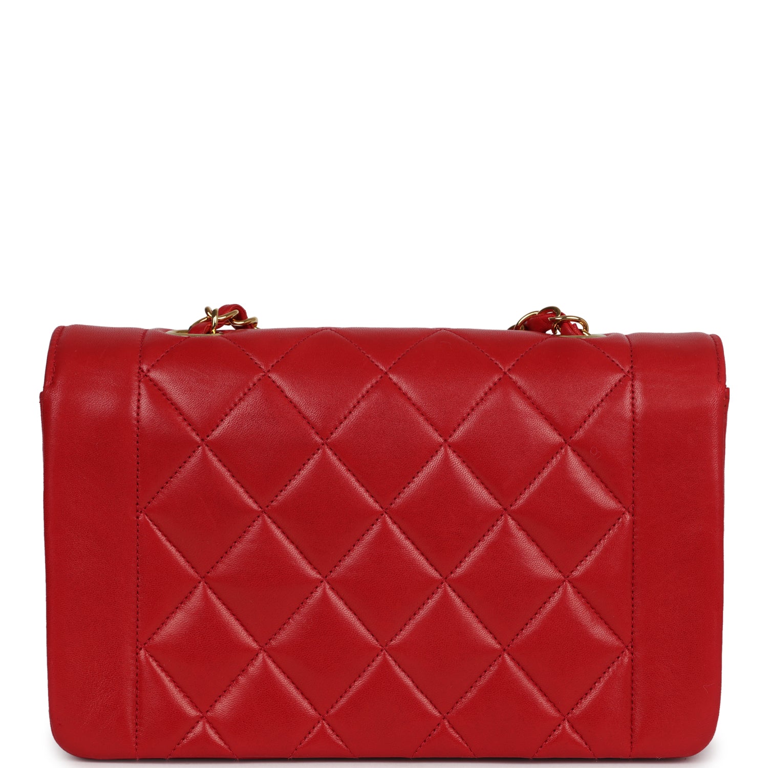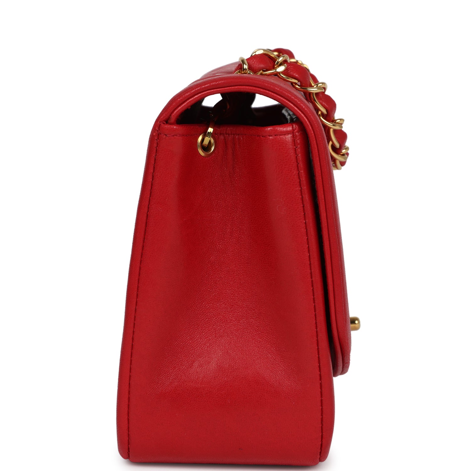 Vintage Chanel Small Diana Flap Bag Red Lambskin Gold Hardware