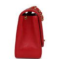 vintage Diana flap bag is in red lambskin leather with gold hardware, featuring a front flap with classic gold plated CC turnlock closure and red leather and gold chain link shoulder/crossbody strap.