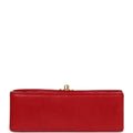 The interior is lined in red leather and includes one zip pocket with CC logo pull and one slip pocket on the back wall.