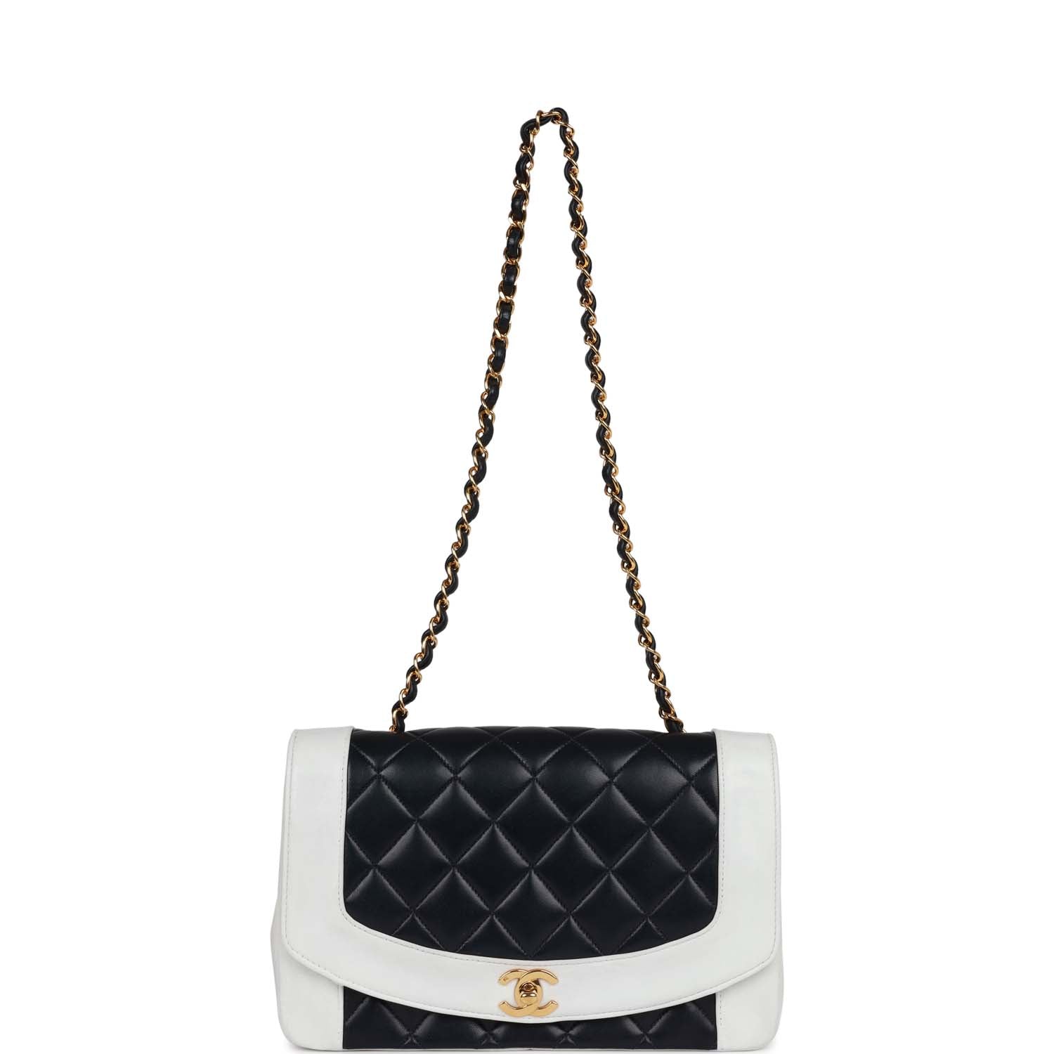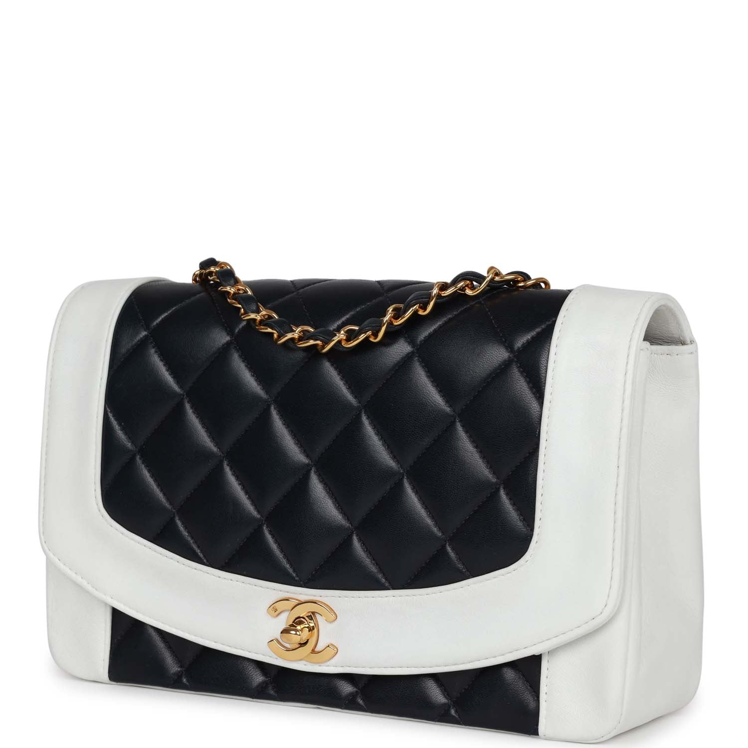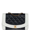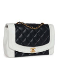 Vintage Chanel Small Diana Flap Bag White and Navy Lambskin Gold Hardware