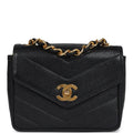 Vintage Chanel Square Chevron Envelope Flap Bag Black Caviar Gold Hardware